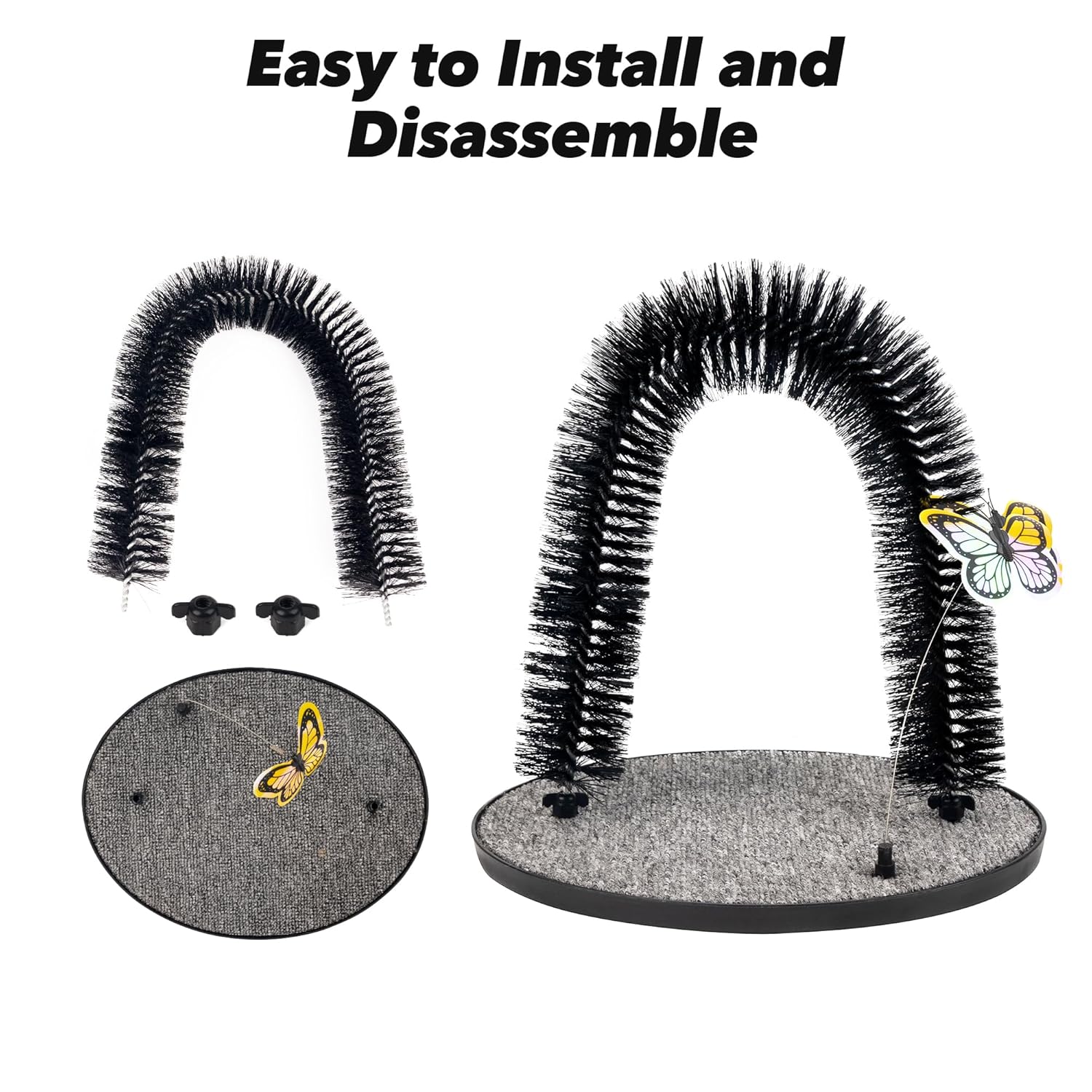 Pet Prime 2in1 Cat Arch Self Groomer for Indoor Cats, Back Scratcher Grooming Massage Brush With Sturdy Scratching Pad, Durable Brusher and Butterfly Toy