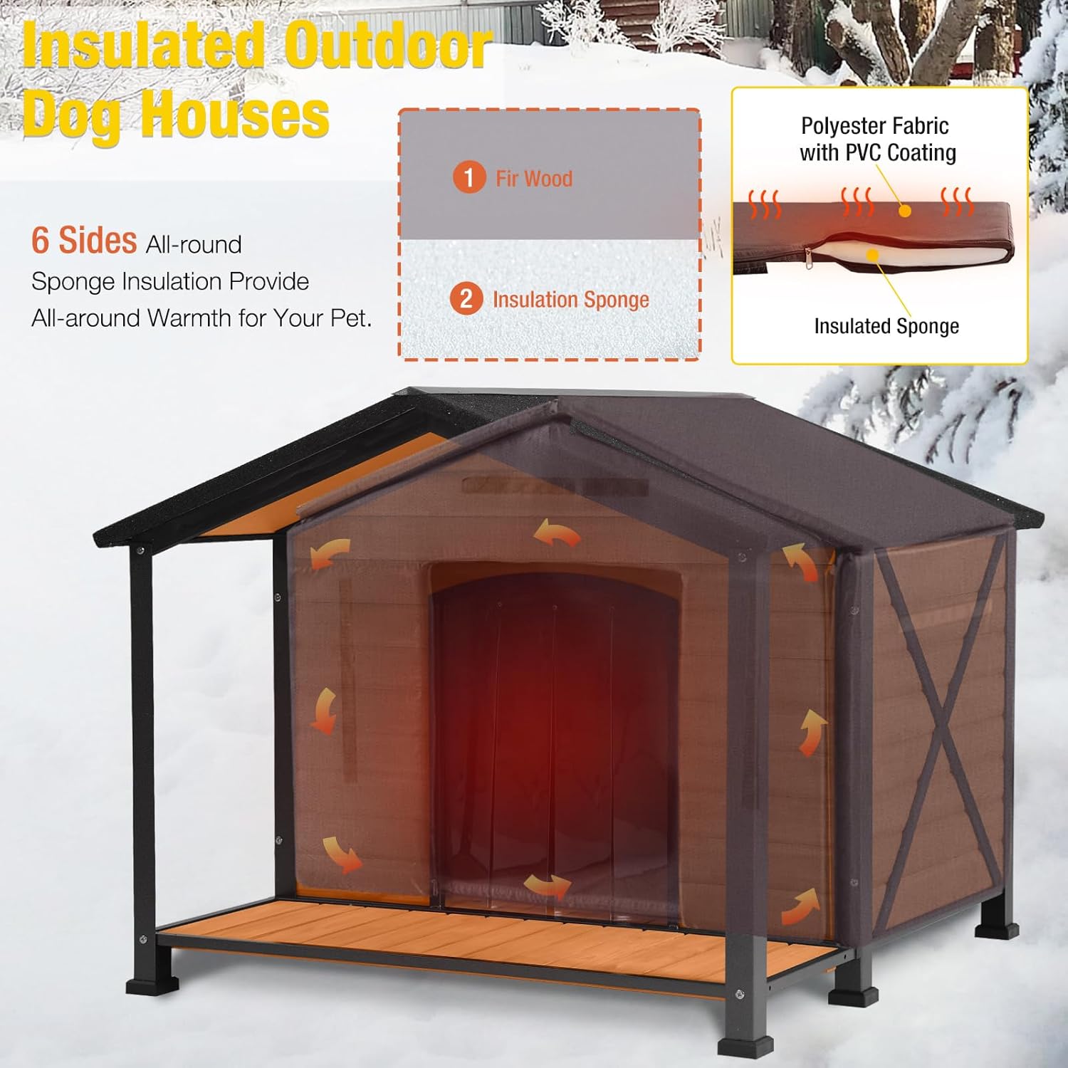 Aivituvin Large Dog House Outdoor Insulated Dog Kennel with Insulated Liner for Winter