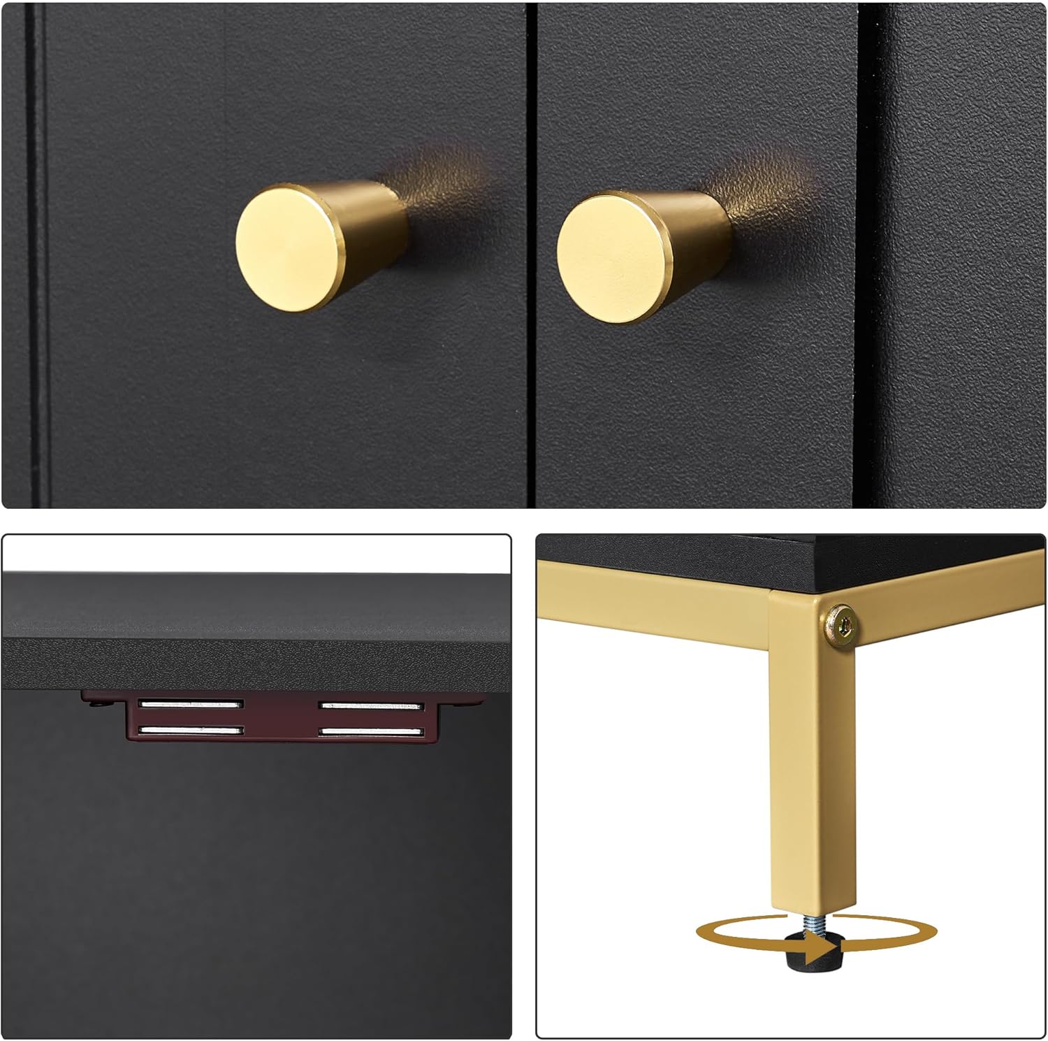 • Modern style: The cat litter box cabinet features black finish and metallic gold-colored metal frame, adding an elegant and stylish touch to your home decor. Its minimalist design and exquisite detailing inject a touch of luxury and sophistication into your living space