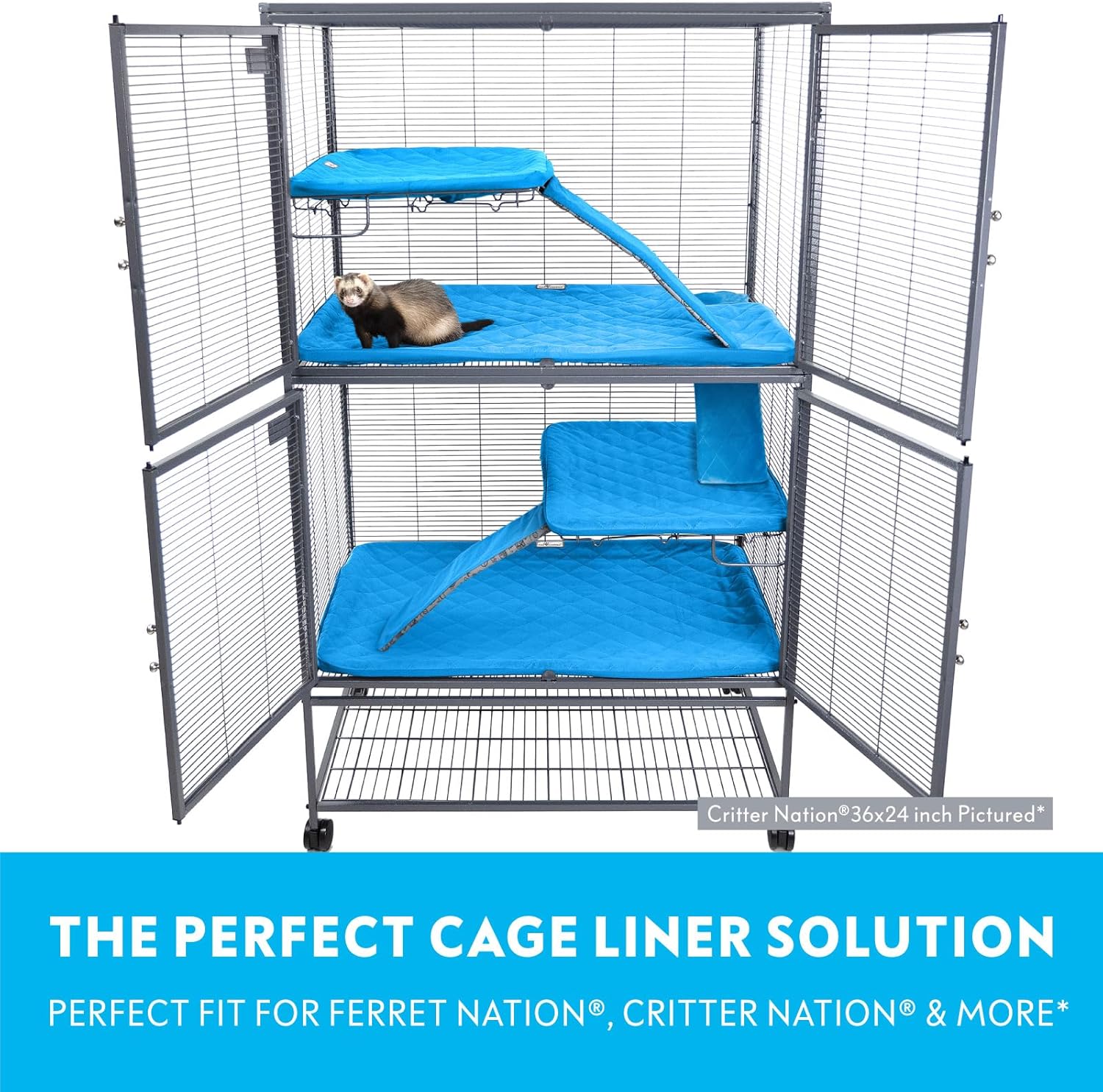 • PERFECT FIT: Designed specially for use with the Ferret Nation and Critter Nation* double unit cage. A stretchy elastic bottom makes the liner easy to put on and secure over the trays, and two flexible wide straps reinforce the liner for a perfectly tight fit. The top pan includes a cut-out for the ramp opening. The ramp covers slide on to the ramps and are secured with a strong hook-and-loop (velcro) closure.
