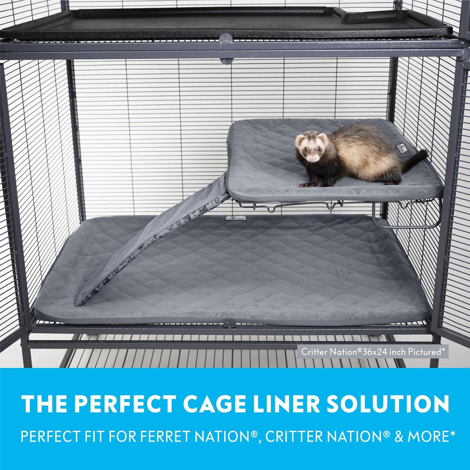 • PERFECT FIT: Designed specially for use with the Ferret Nation and Critter Nation* single unit cage. A stretchy elastic bottom band makes the liner easy to put on and secure over the trays, and two flexible wide straps reinforce the liner for a perfectly tight fit. The ramp cover slides on to the ramp and is secured with a strong hook-and-loop (velcro) closure.