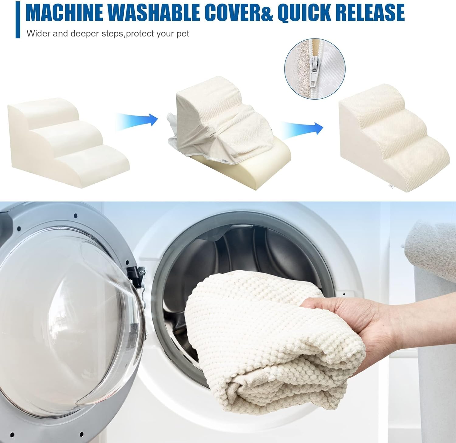 • Easy to Install and Clean: This pet step can be assembled and disassembled through simple steps. It is easy to clean. You can wash the removed cover by machine to keep the pet step clean and tidy