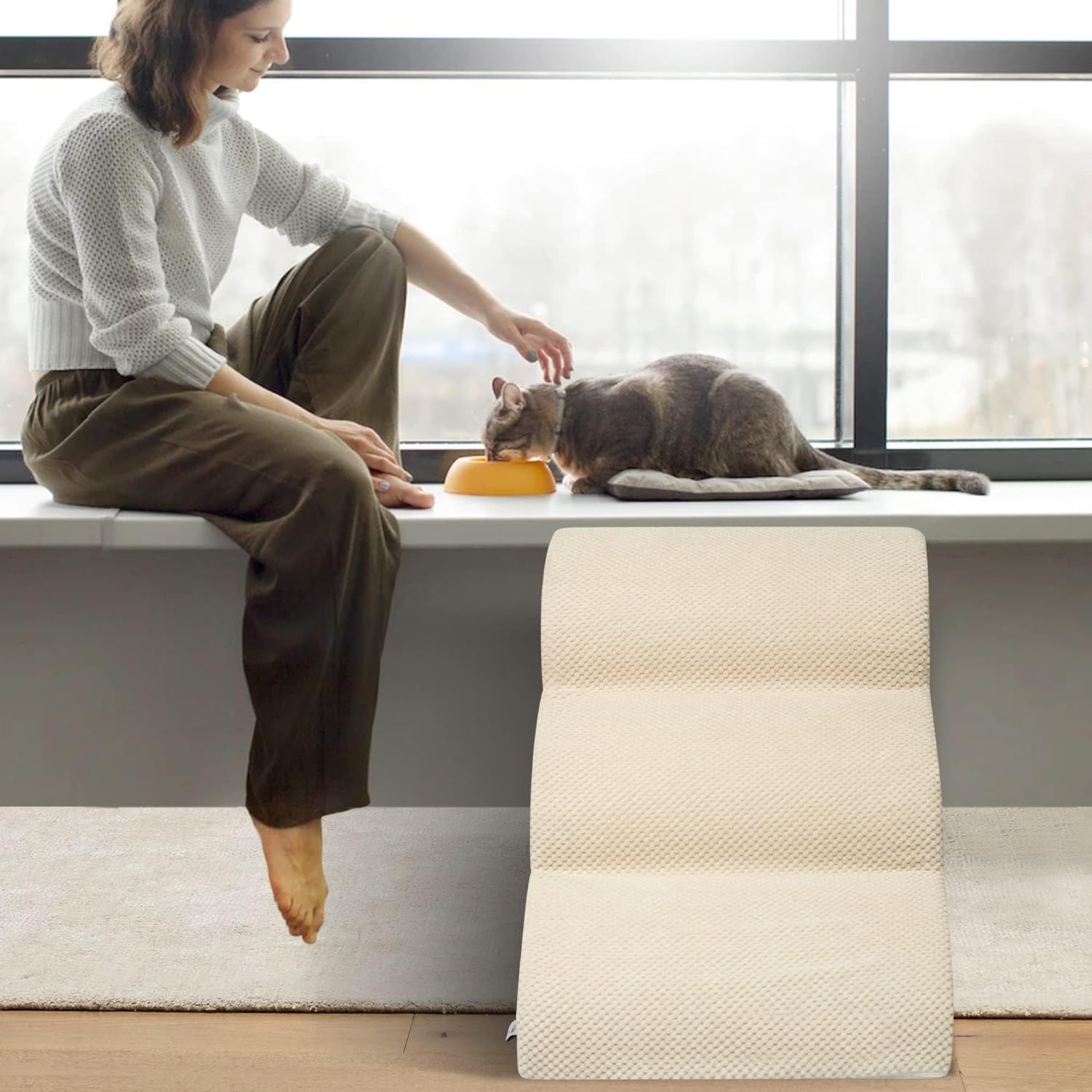 • Double Sided Anti Slip: The dog steps cover is made of corduroy with greater friction than other fabrics, which provides extra grip while in use, the bottom features nonslip rubber dots, preventing pets from sliding while climbing, providing pets with double safety protection