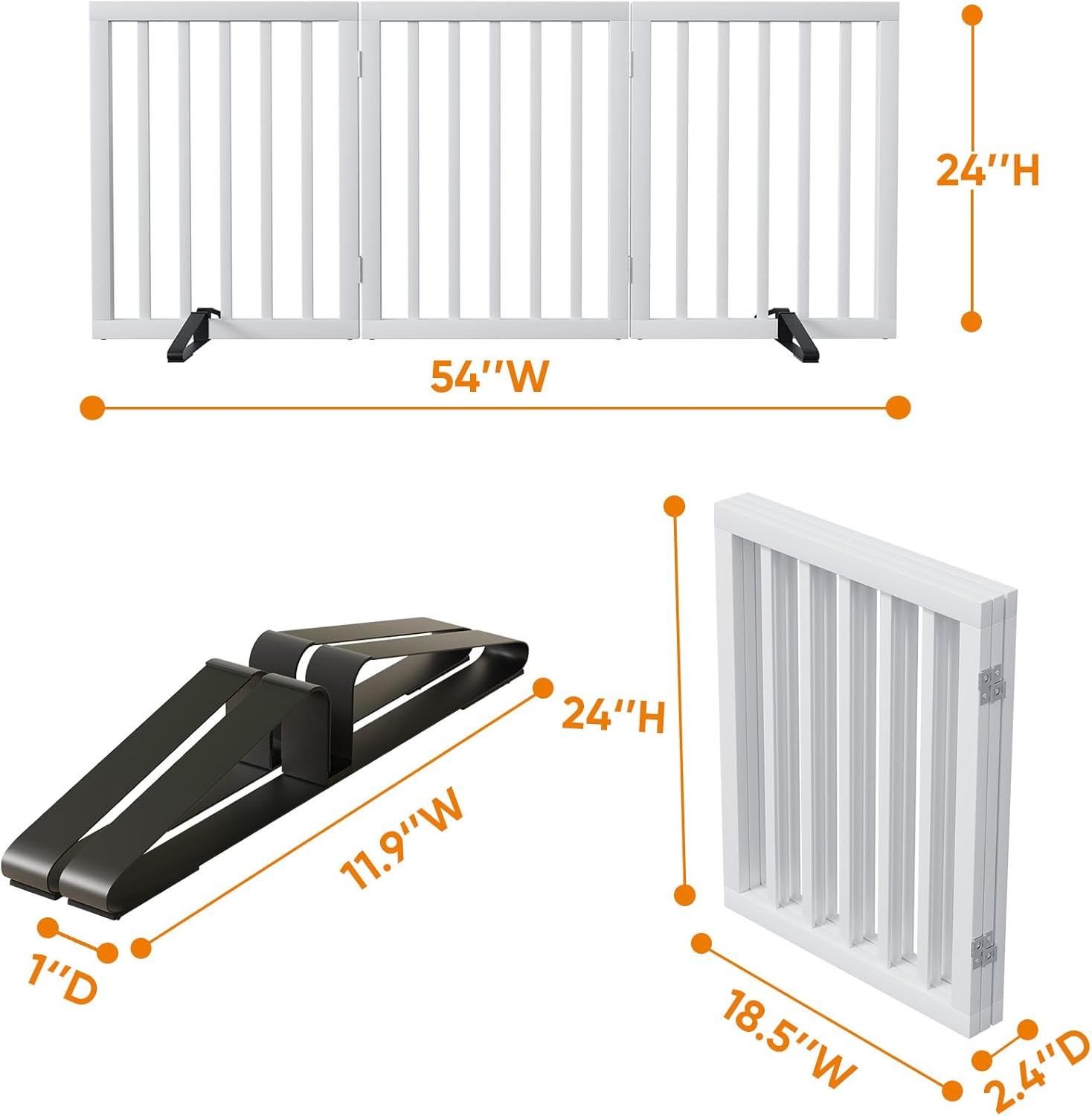 White 18-55" Wide Pet Gate, Bamboo Dog Gate for Stair, Foldable Dog Gates for Doorways House, Freestanding Pet Gates 24inches Tall, Doogie Puppy Gate Fences Indoor