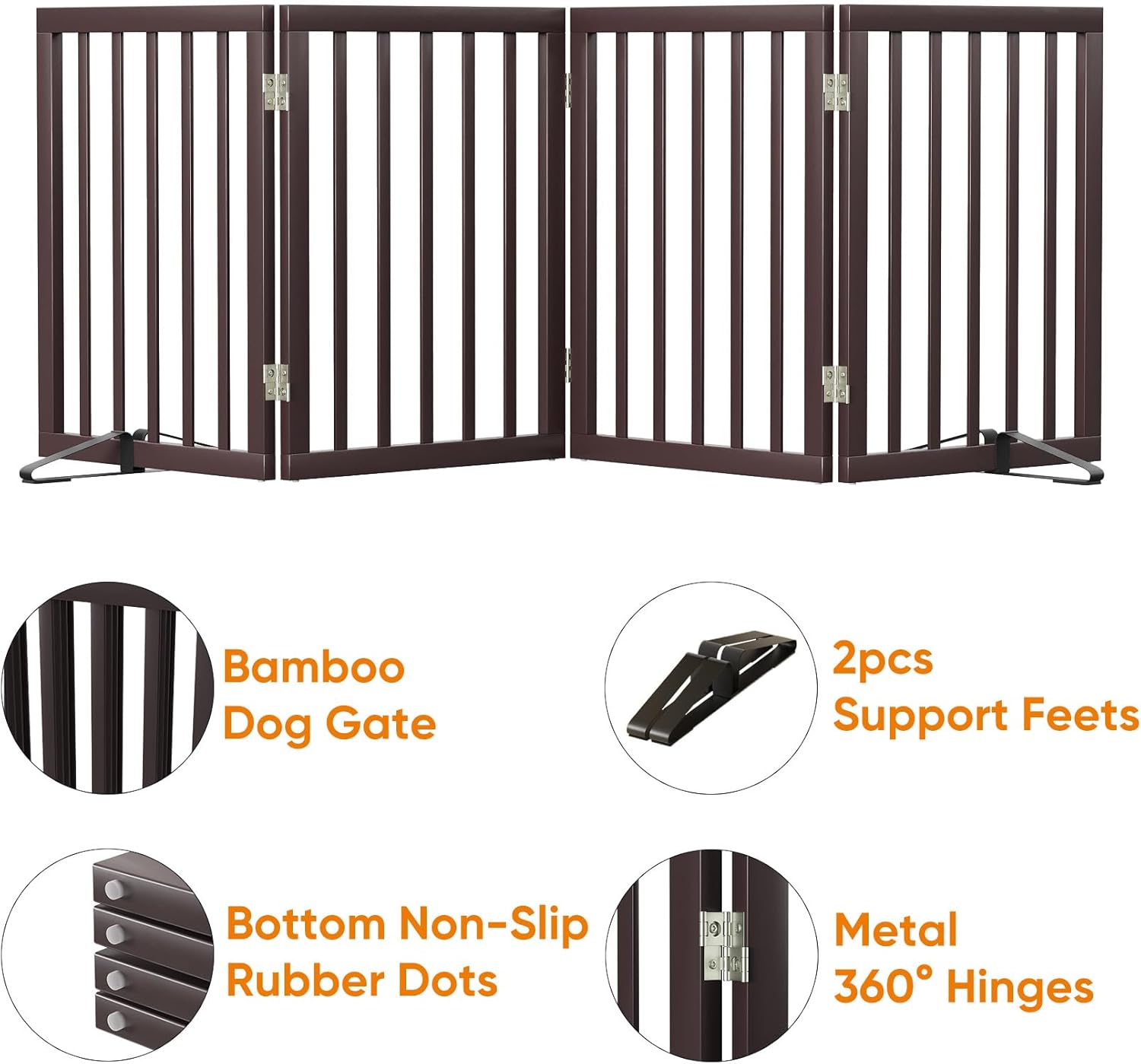 • Stable and Durability: This freestanding pet gates for dogs is designed with an attractive bamboo surface and sturdy non-slip rubber bottom dots that are very stable and strong when used with the support feet, and will not cause potential damage to your home. This versatile dog gate indoor is a pet enclosure, room divider, and dog gates all in one to meet all aspects of your scenario!