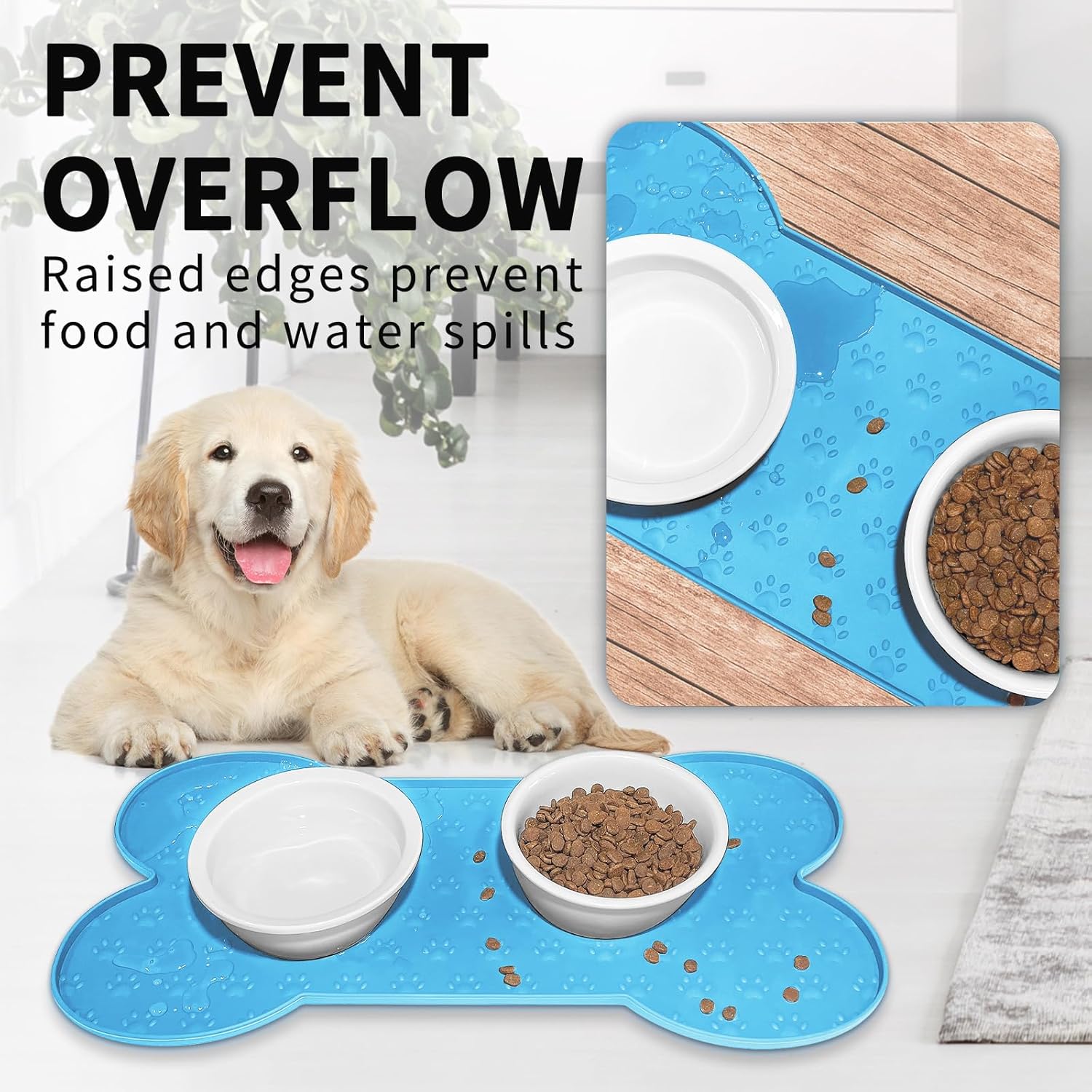 • Health Silicone Material - This pet bowl mat is non-toxic, and non-allergenic, protecting the health and safety of your pet's feeding. 19.4" x 9.8" holds two regular bowls, perfect for small to medium-sized dogs and cats to enjoy a delicious meal tray.