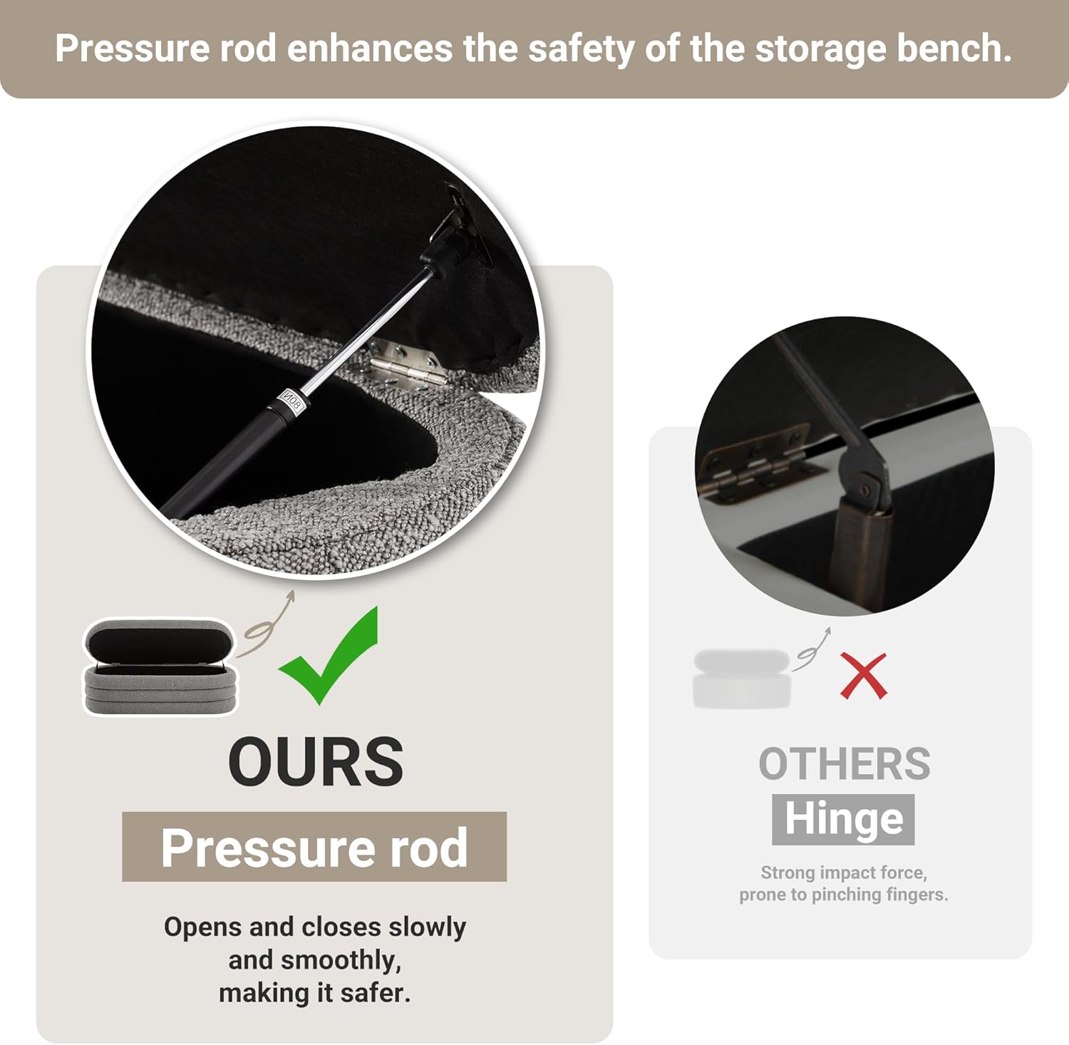 • Safe and Rounded Design: The ottoman bench features a safe and effortless pressure bar design for easy lifting. Its rounded appearance helps prevent injuries to children during play, making it suitable for families with kids.