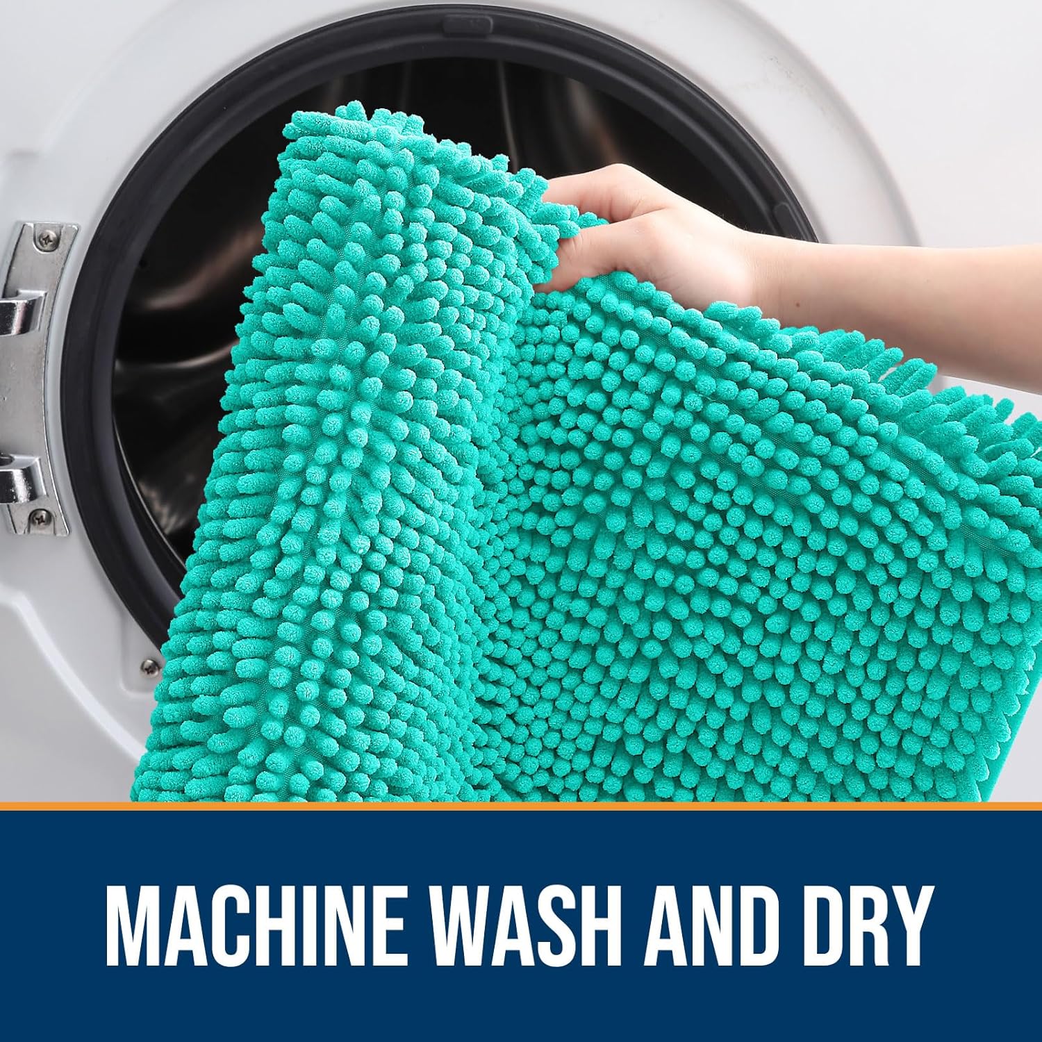 OLANLY Dog Door Mat for Muddy Paws 59x35, Absorbs Moisture and Dirt, Absorbent Non-Slip Washable Doormat, Quick Dry Chenille Mud Mat for Dogs, Entry Indoor Entryway Carpet for Inside Floor, Teal