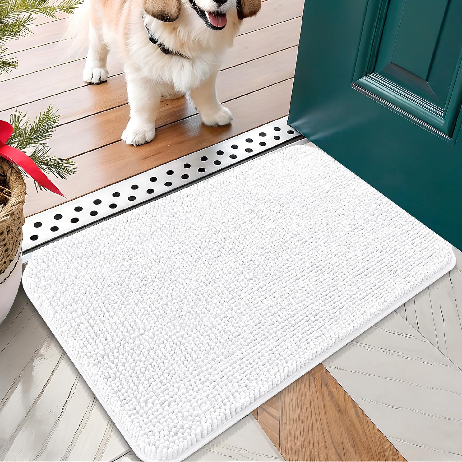 OLANLY Dog Door Mat for Muddy Paws 24x16, Absorbs Moisture and Dirt, Absorbent Non-Slip Washable Doormat, Quick Dry Chenille Mud Mat for Dogs, Entry Indoor Entryway Carpet for Inside Floor, White