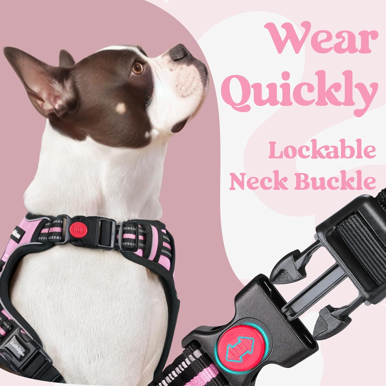 rabbitgoo Dog Harness for Large, No Pull Pet Harness with 3 Buckles, Adjustable Soft Padded Vest with Control Handle, Walking Reflective Pet Vest for Large Dogs, Pink, L