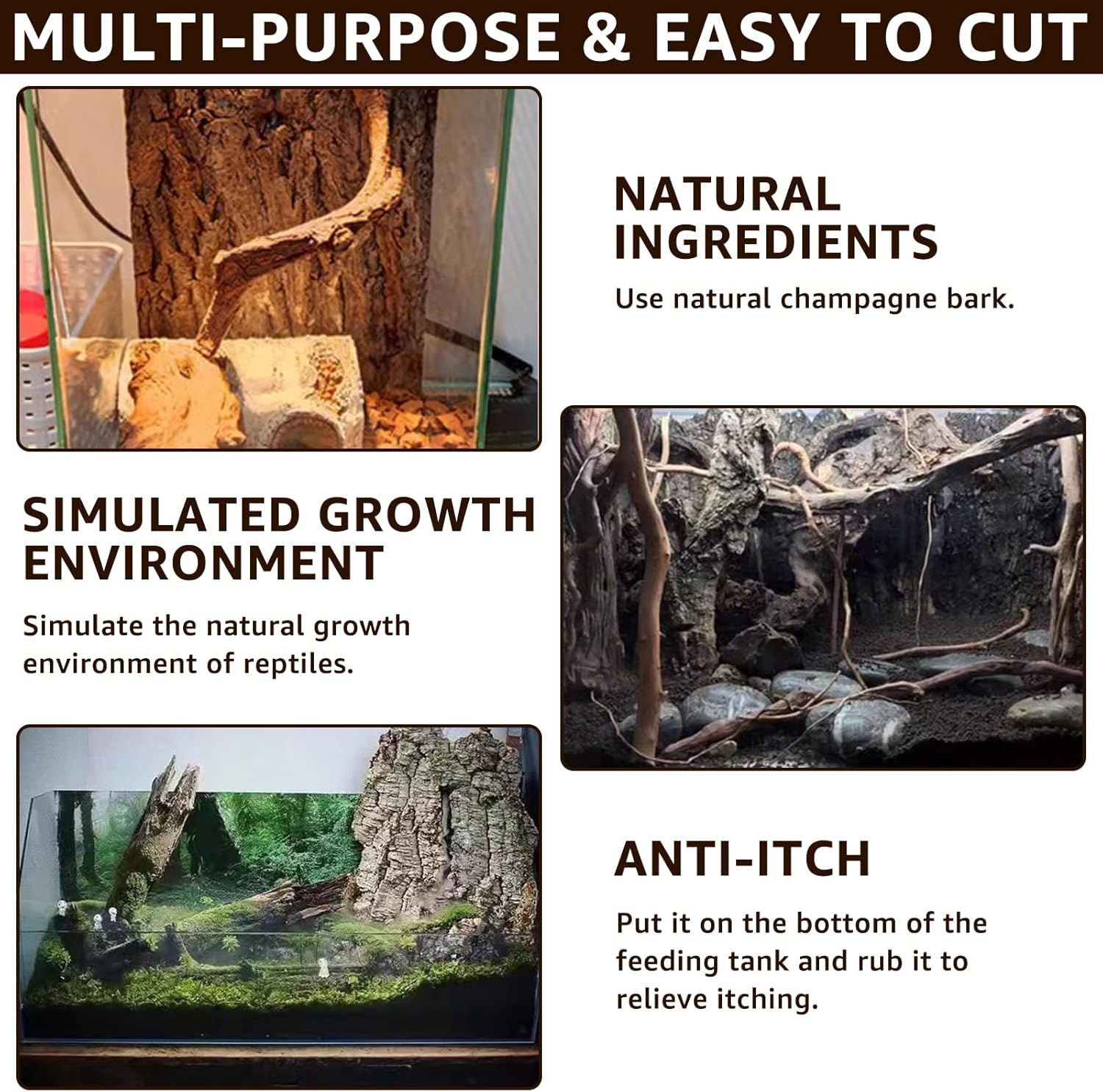 • NATURAL MATERIALS: The cork bark background is made from natural champagne bark to create a natural safe habitat for reptiles. It's like living in the wild, so they can live and play freely.