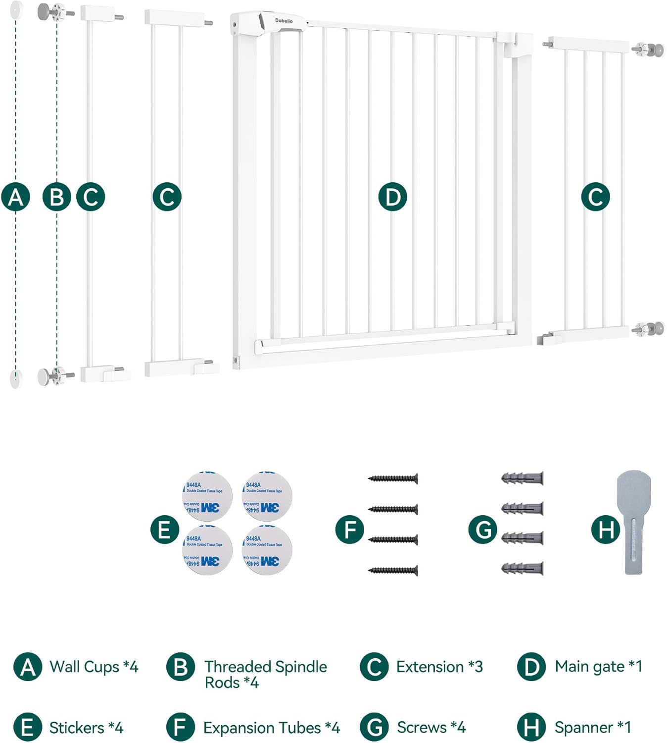 • EXTRA WIDEโ€” The pet gate consists of a gate and 3 extensions. The maximum width is 57 Inch, while the minimum is 36 Inch, ideal for wide openings as well as stairs, hallways and doorways to protect children and pets.The main gate is widened to 29.5 inches, making it very convenient to pass through.