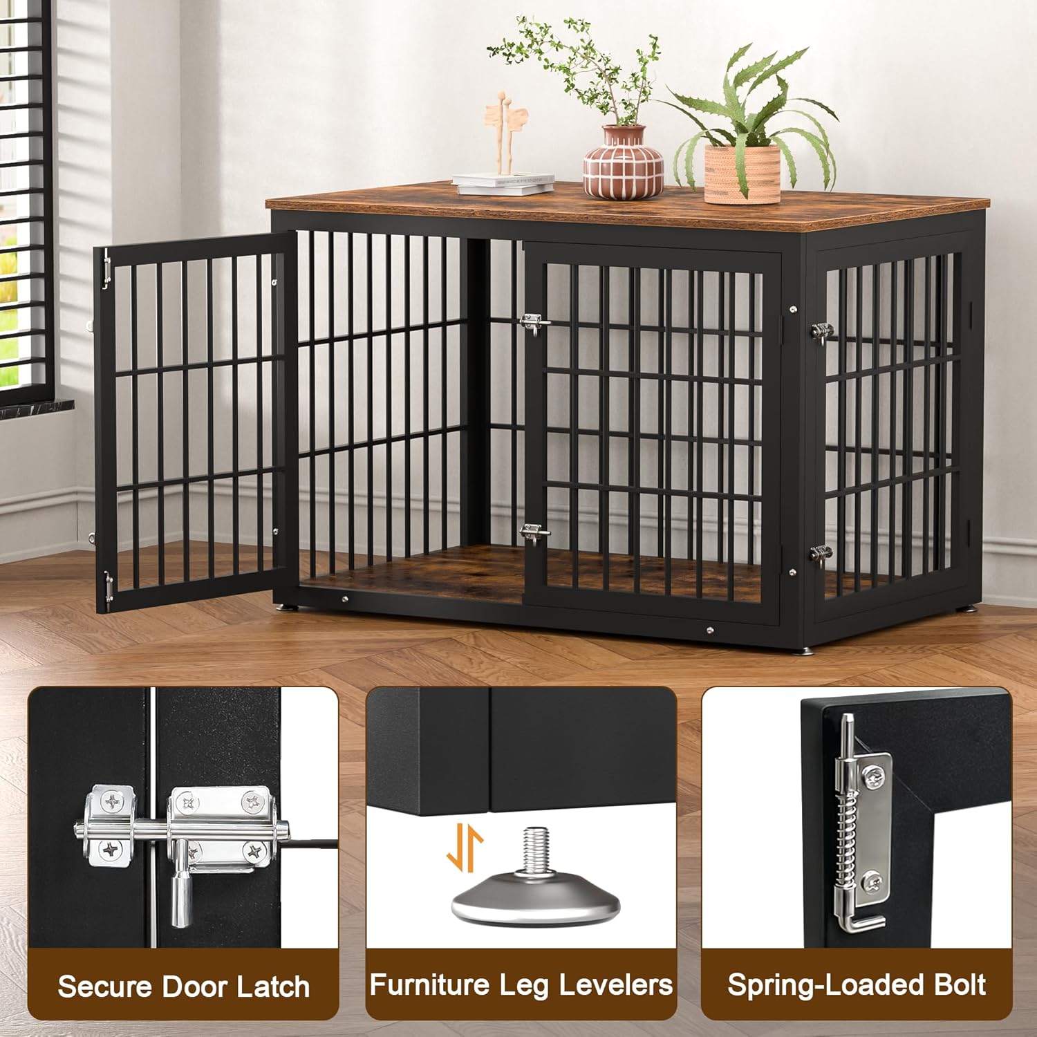 • 【Furniture-Style】This dog crate can be used as an elegant end table while providing a safe area for your furry friend. Furniture style is able to blend in and complement virtually any decor theme.