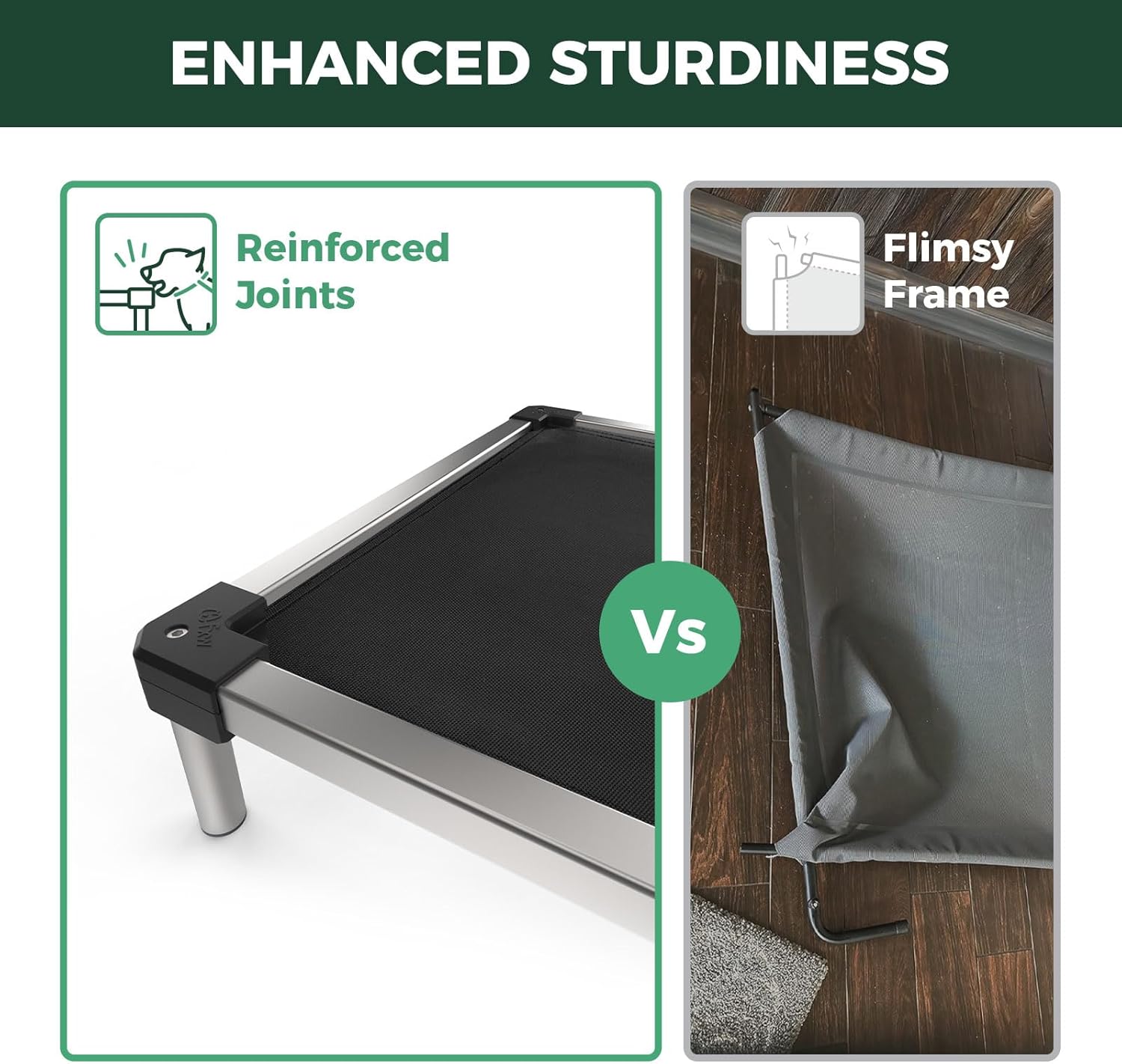 • Indestructible & Dog-Safe: Crafted with a premium aluminum alloy frame and chew-proof edges, this bed withstands aggressive chewers while keeping your pup’s gums safe and happy.