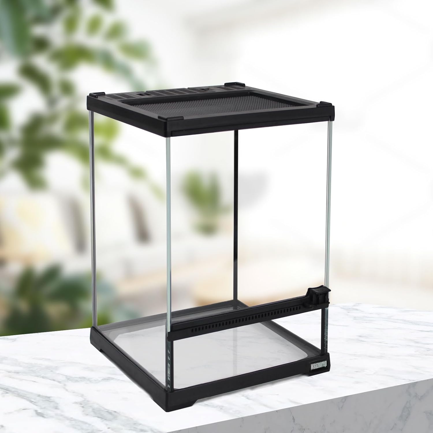 • 【360° Panoramic Vision】: The size of this reptile tank is 8"x8"x10", and it is made of all-ultra-white glass, so that you can see your small animal's activities and physical conditions from all angles.