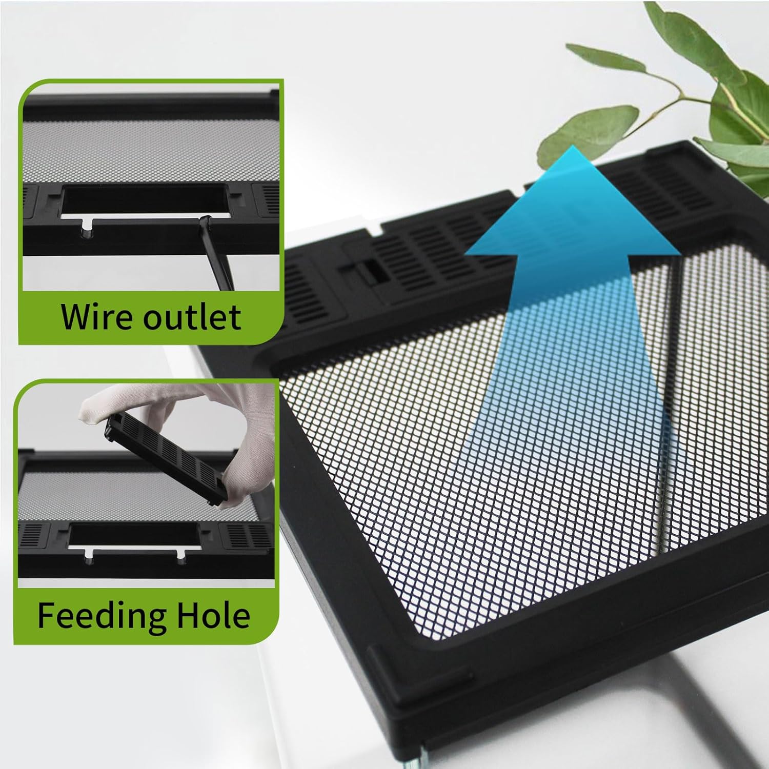 • 【Metal Screen Top】: The top of our terrarium tank is a removable metal mesh so your pet can enjoy optimal airflow, UVB and IR penetration, and dome lighting. The electrical outlet on the top door is for your convenience.