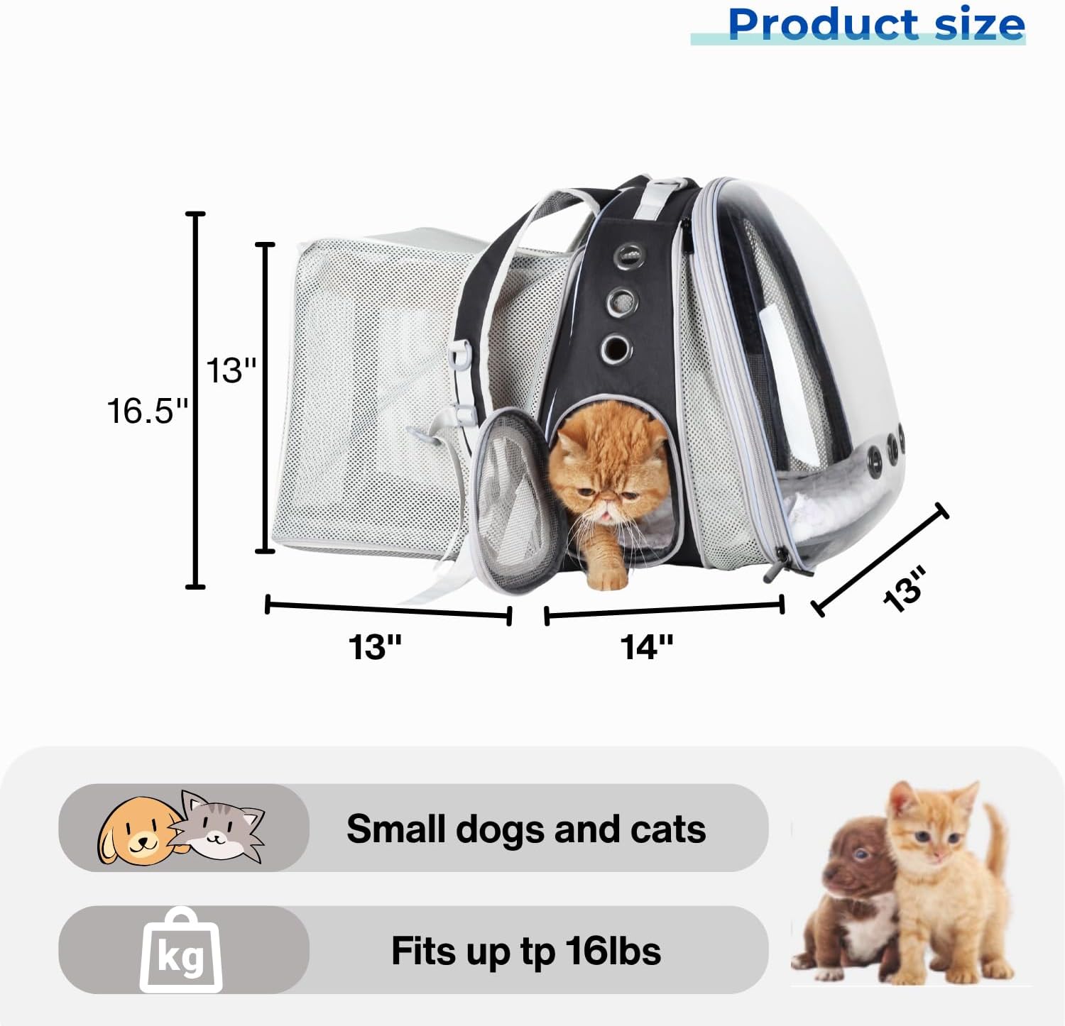 Lollimeow Cat Carrier Backpack, Bubble Dual Expandable Backpack Carrier, Pets and Small Dogs,Airline-Approved, Designed for Travel, Hiking, Walking & Outdoor Use (Dual Expandable-Black)