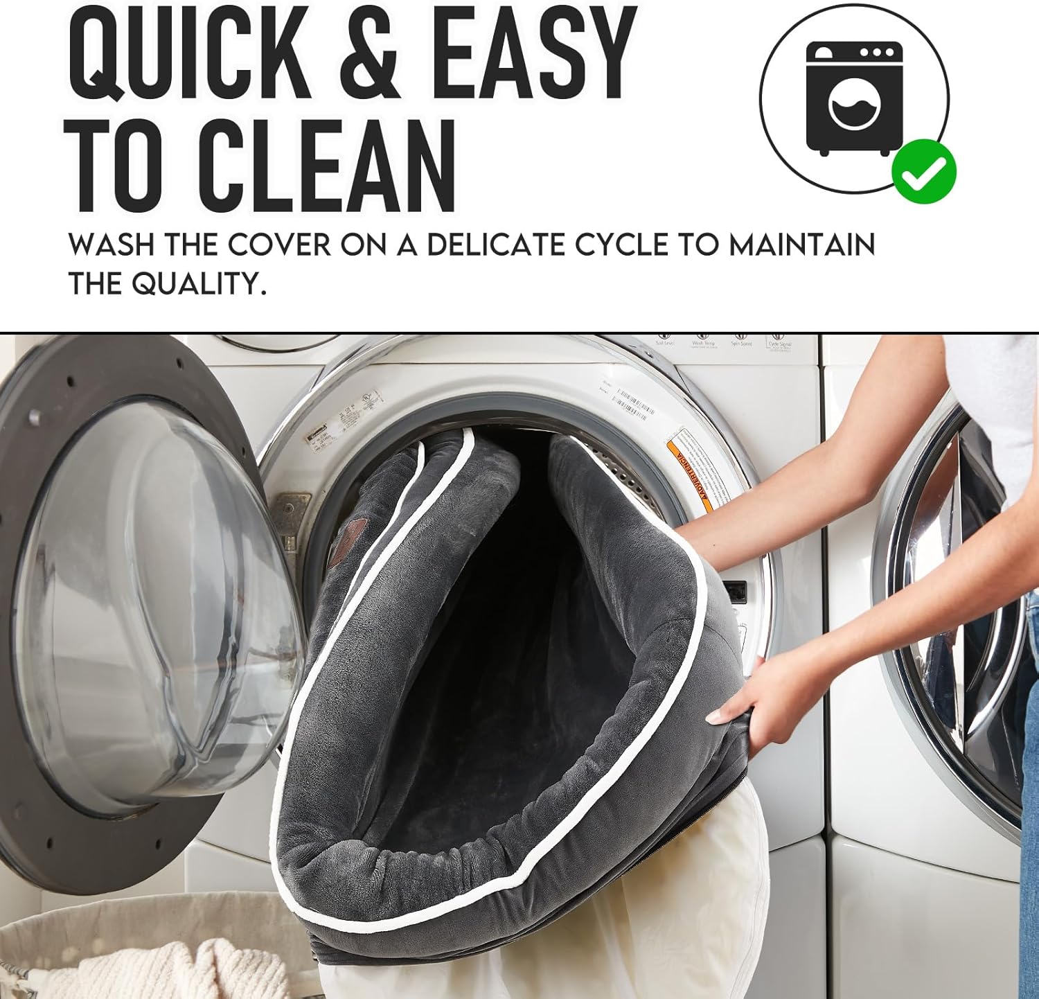 • PET-SAFE MATERIAL: This big cat bed is made with OEKO-TEX Standard 100 and CertiPUR-US certified fabrics and foam, suitable for indoor, outdoor, and car use. It comes with a non-slip bottom to minimise slips and falls, offering a safe and cozy resting and charging space for your small, medium, large, and jumbo-sized pet!