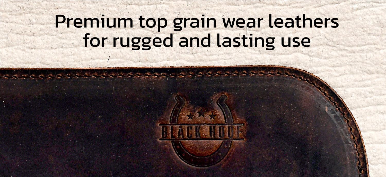 • ENHANCED DURABILITY WITH TOP-GRAIN WEAR LEATHERS Built with premium top-grain wear leathers, this saddle pad is designed to withstand the daily rigors of horseback riding, providing lasting durability and performance for years to come.