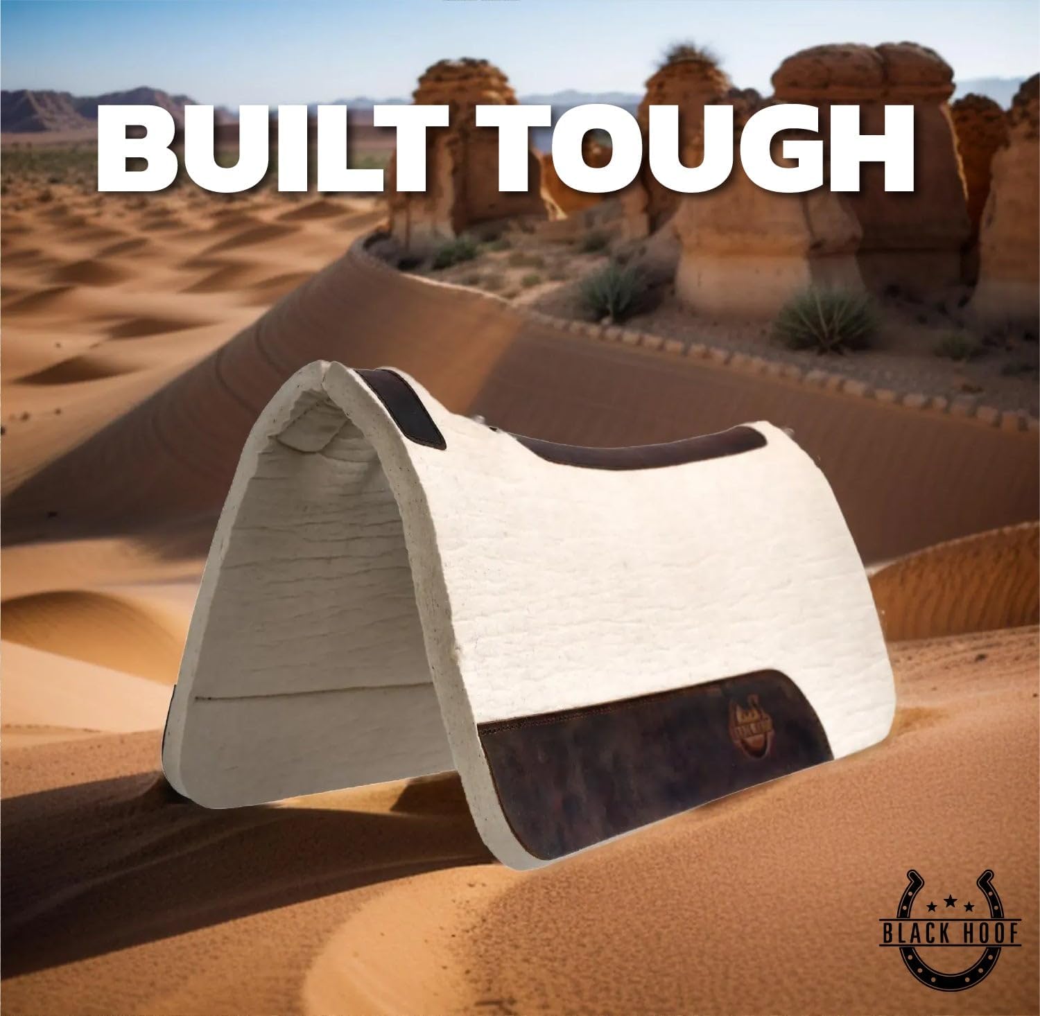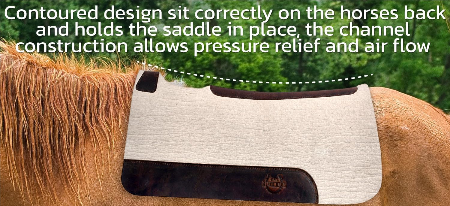 • PREMIUM MERINO WOOL FOR SUPERIOR COMFORT Crafted with 100% steam-pressed Merino wool felt, this saddle pad provides exceptional softness and cushioning. The high-quality wool minimizes pressure points and ensures your horse enjoys maximum comfort during every ride.