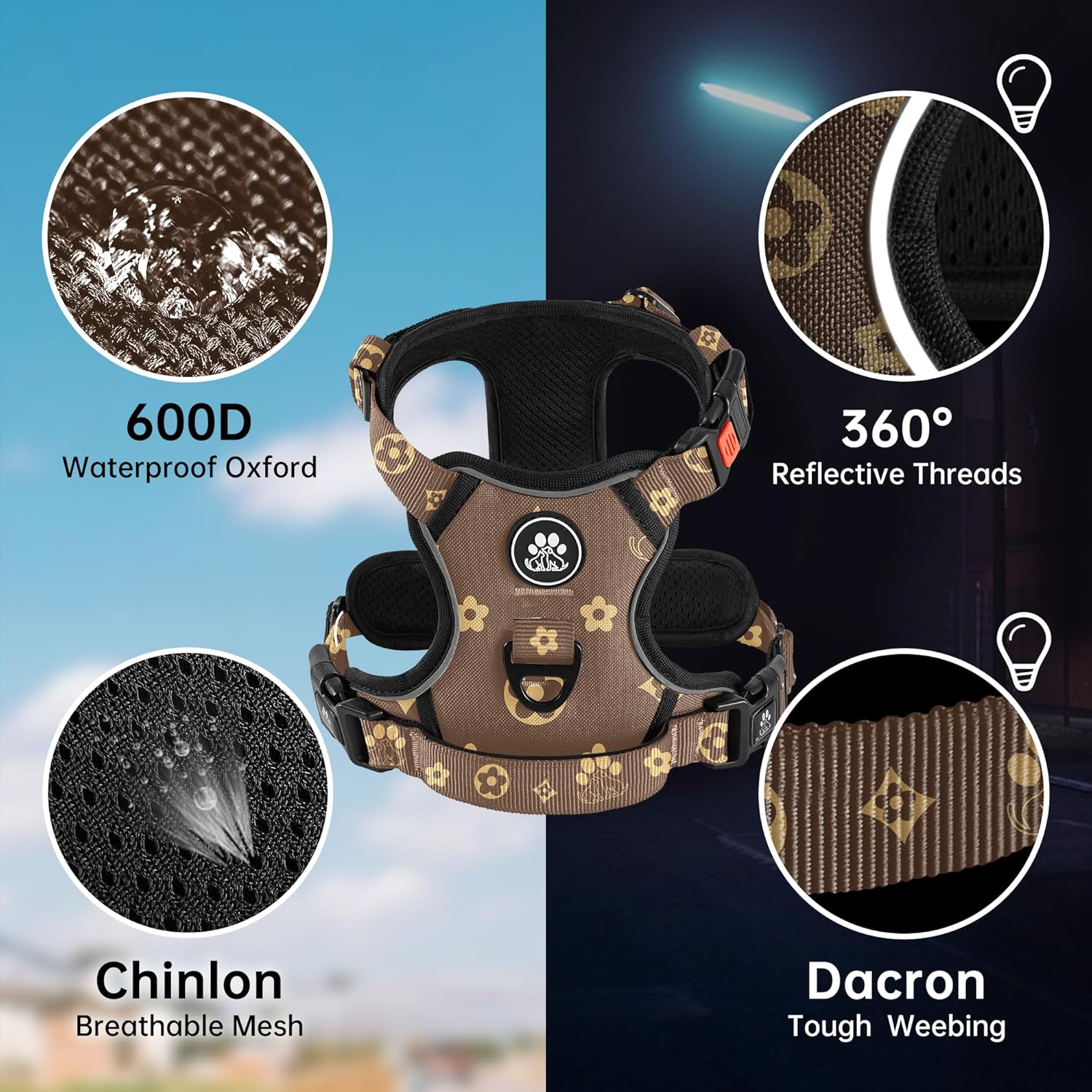 NESTROAD No Pull Dog Harness,Adjustable Oxford Dog Vest Harness with Leash,Reflective No-Choke Pet Harness with Easy Control Soft Handle for Small Dogs(Small,Dark Brown)