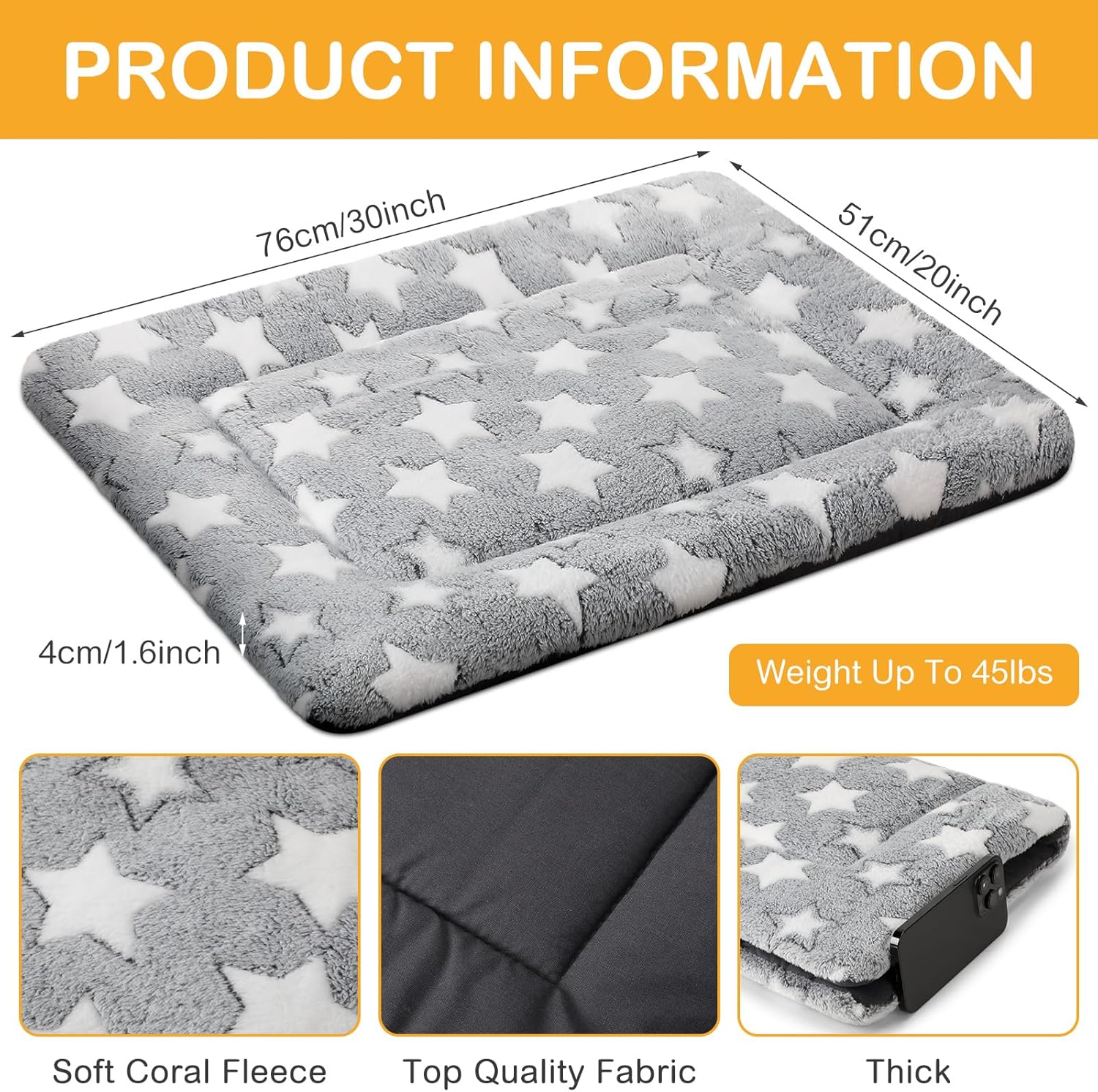 • Stylish Design: the dog crate mat is made of quality coral velvet and linen cotton materials, with nice craftsmanship; This stylish dog bed mattress features a traditional rectangle open mat design that provides pets plenty of room to sleep; Comfortable surface can match up with the furniture easily and has good breathability; The cute star surface can play a decorative role, making the dog crate more beautiful and lovely