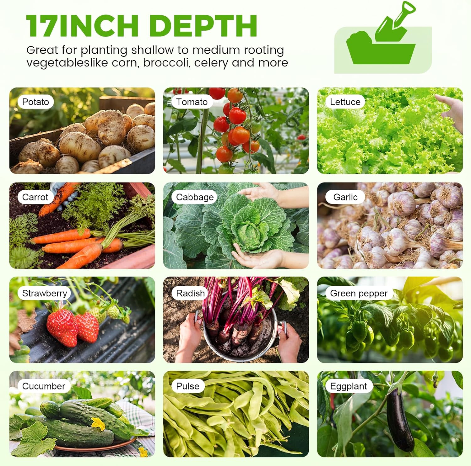 • 【18’’ Growing Depth】Measuring 48"(L) x 24"(W) x 18"(H), the metal raised garden bed holds 89 gallons of soil and provides extra large growing space for vegetables, fruits, flowers and other plants.