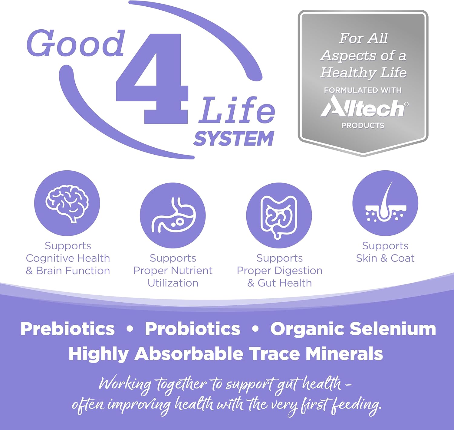• Our proprietary Good 4 Life+ system includes 4 key ingredients that work together to support gut health and the overall well-being of your pet plus the inclusion of NVGEN for high animal protein diets.