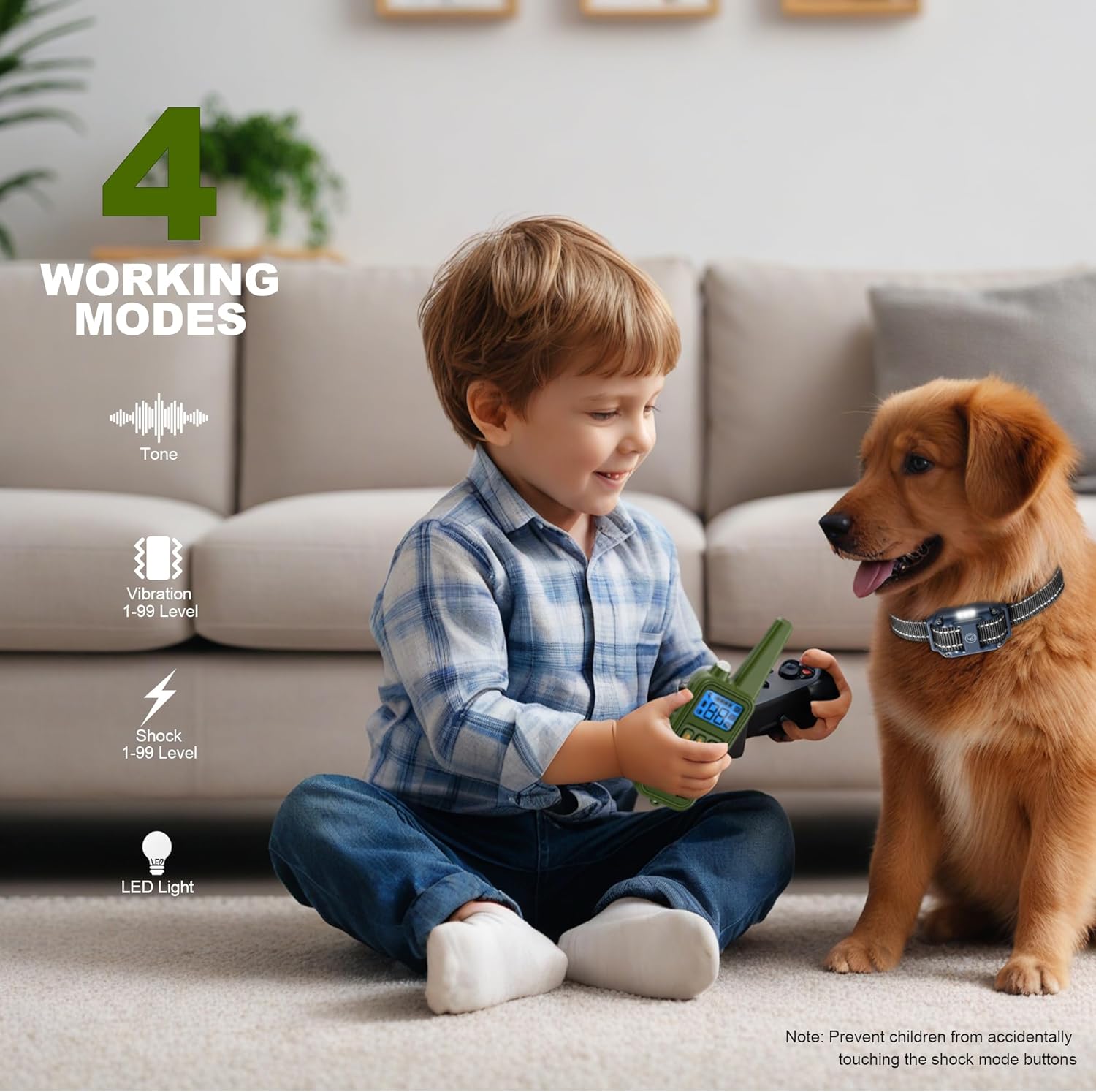 • Featuring 4 training modes: beep, vibration (1-99), static shock (1-99), and an LED light, transform your dog's training experience with Heaflex dog shock collar, our remote control is designed for convenience and security