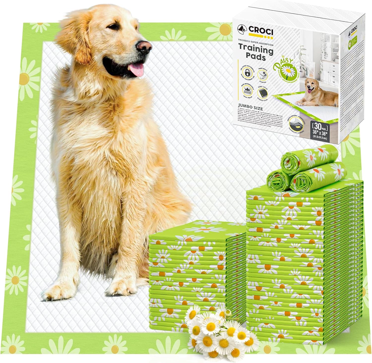 CROCI Dog Pads Extra Large 36x36in Daisy Pattern, Puppy Pads with Adhesive Tabs Super Absorbent Up to 11 Cups, Disposable (30 Counts)