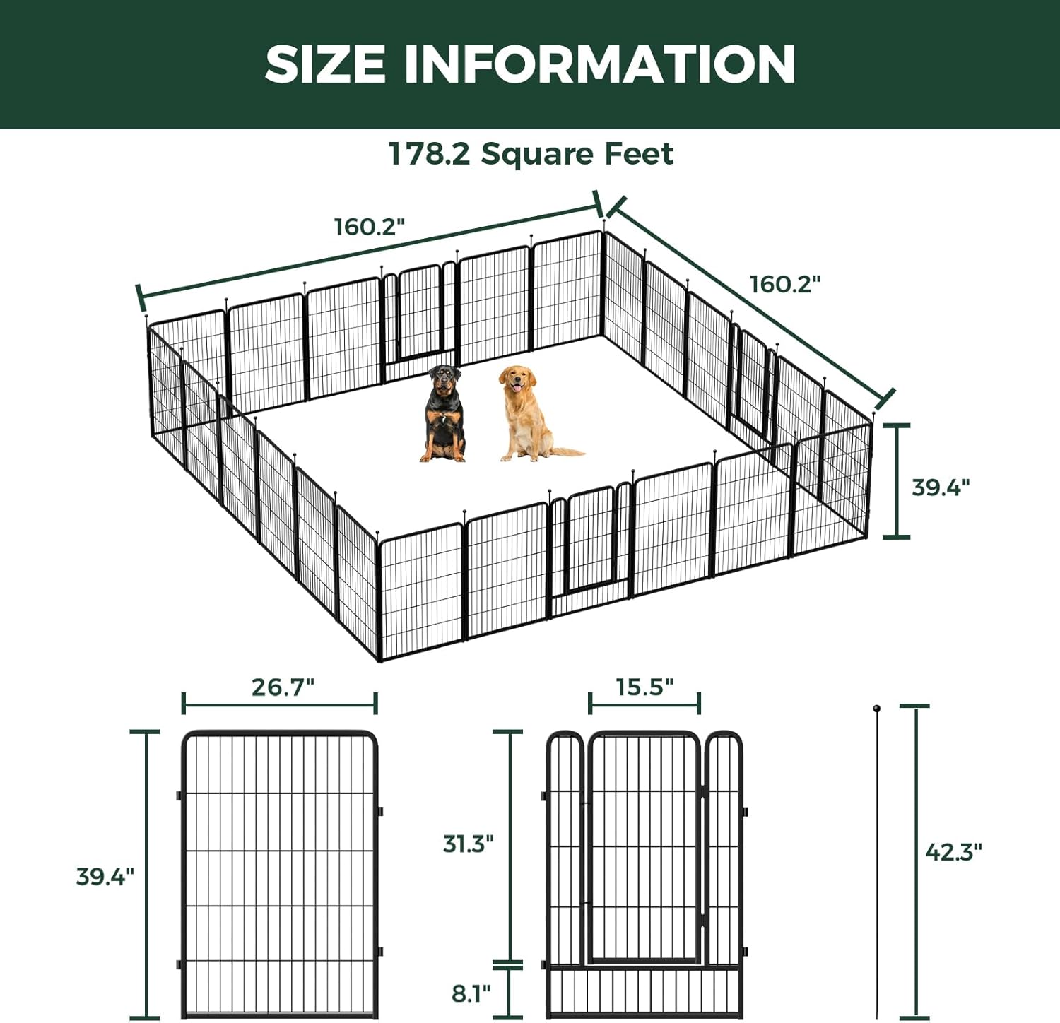 • Super easy to assemble: It won’t take you more than 5 minutes to assemble these portable dog fences as well as pack them away due to the rod-connected design. Meanwhile, panels can be added or removed freely to give you a fully flexible area and arrange the dog pen in any shape you need.