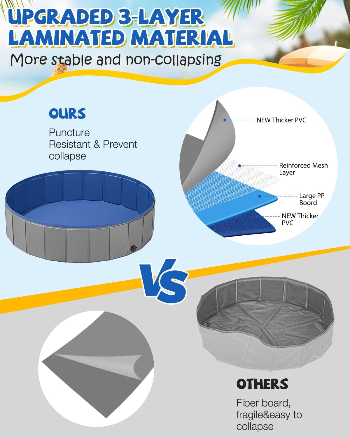 • Warm Tip:To protect the dog pool from scratches, trim your dog’s nails before use—ideal for excited pups who love to dig and splash.