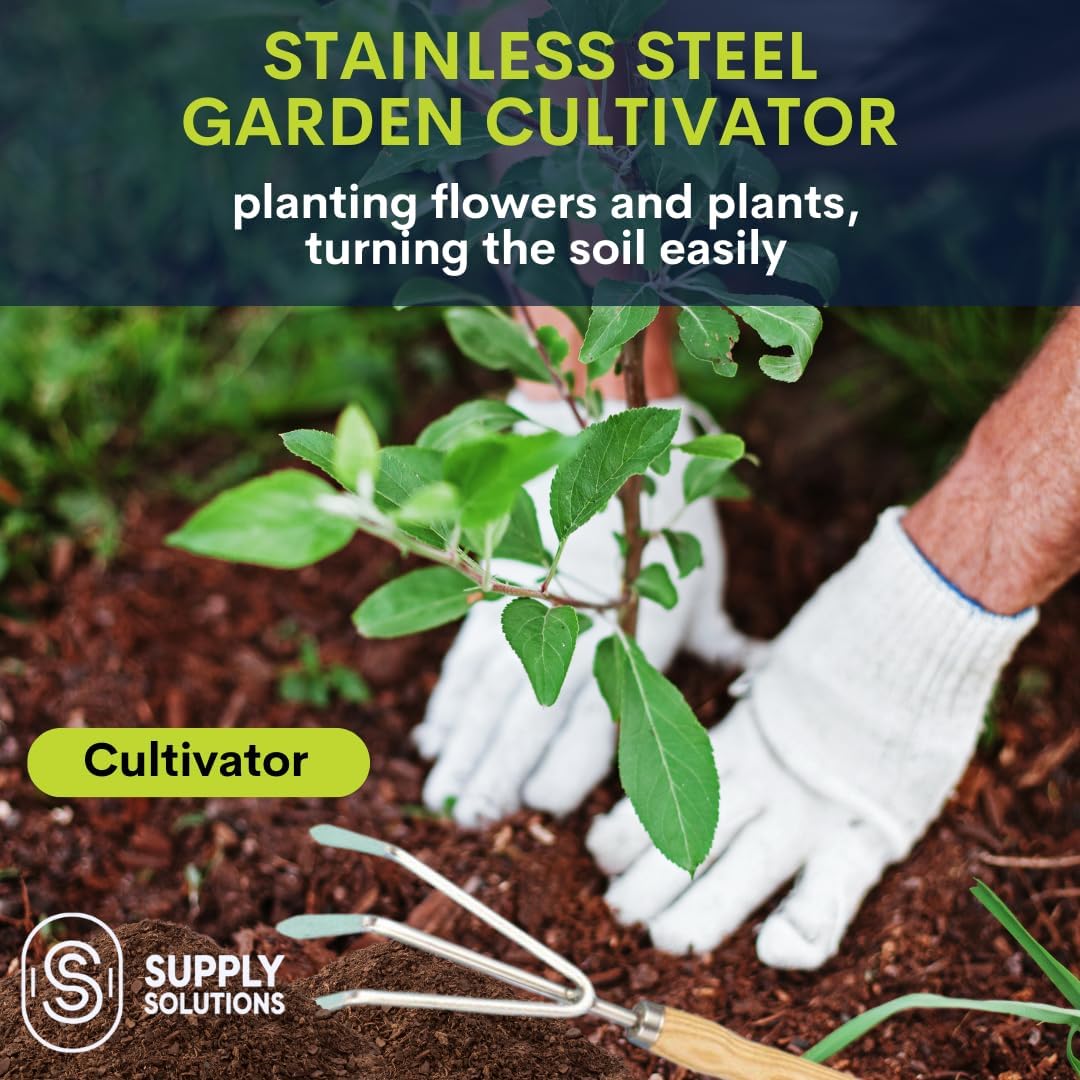 • Convenient 5 piece tool kit: Tackle any home and garden task with ease using our heavy-duty and ergonomic gardening supplies - including hand trowel, transplanter, fork, rake, and cultivator. Ideal for both indoor and outdoor gardening work.