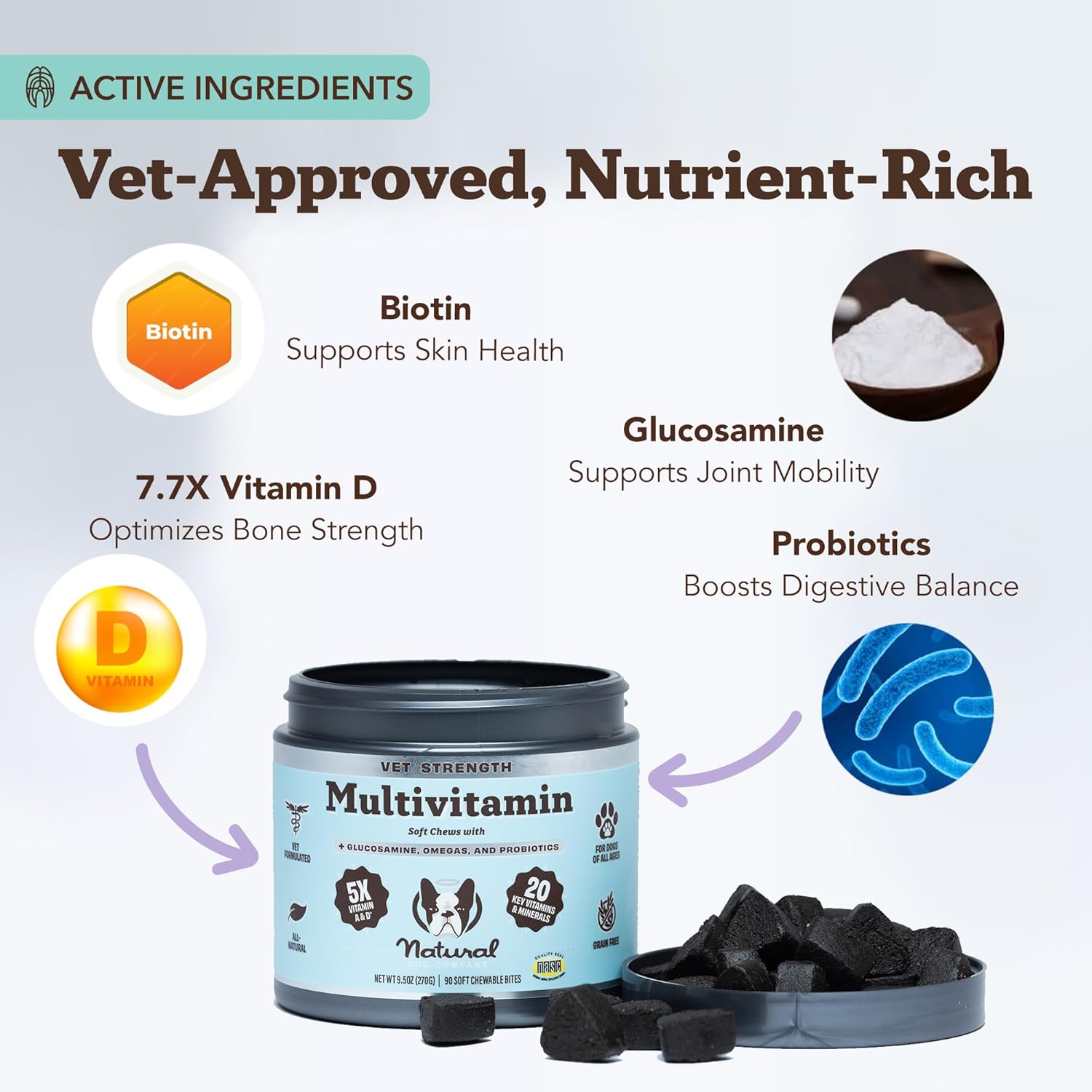 - EASY TO GIVE, HARD TO RESIST: No complicated routines or messy powders just one tasty soft chew a day! These dog vitamins and supplements fit effortlessly into any daily multivitamin for dogs routine. Designed for busy pet parents, our best multivitamin for dogs ensures complete wellness while feeling like a treat. No artificial additives, just pure goodness!