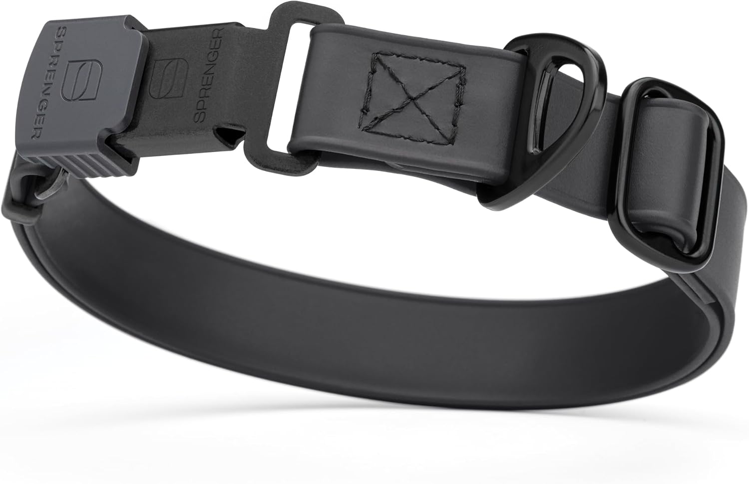 Dogline Biothane Waterproof Dog Collar with Herm Sprenger Black Stainless Steel Quick Release Buckle – Heavy Duty Tactical Durable Collar for Dogs – Comfortable and Safe Pet Collar W3/4" L12-19 Black