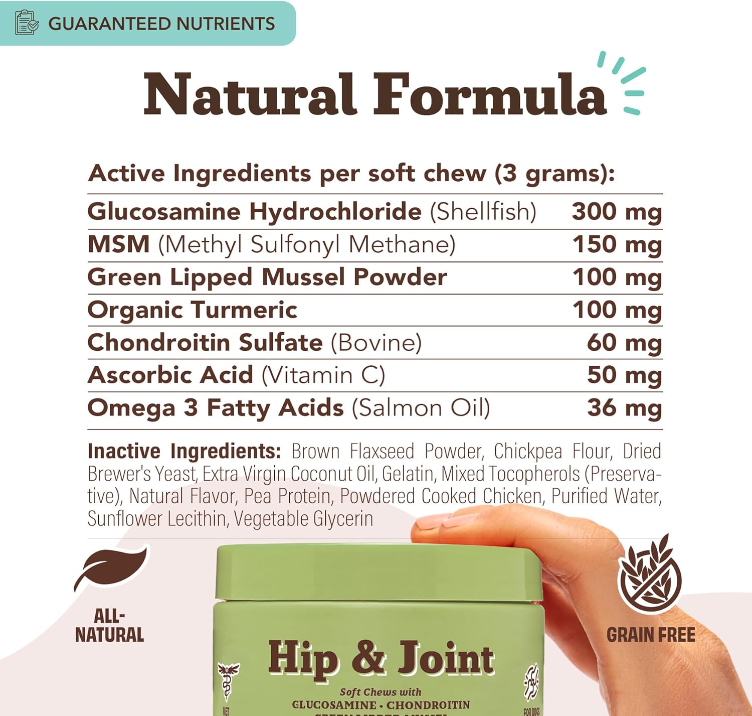 - PROMOTES A HEALTHY INFLAMMATORY RESPONSE: These hip and joint supplements for dogs support healthy joints by maintaining normal inflammation levels, naturally easing discomfort. Featuring powerful ingredients like Green Lipped Mussel, they may work as a Dog Arthritis Supplement and essential Dog Mobility Chews.