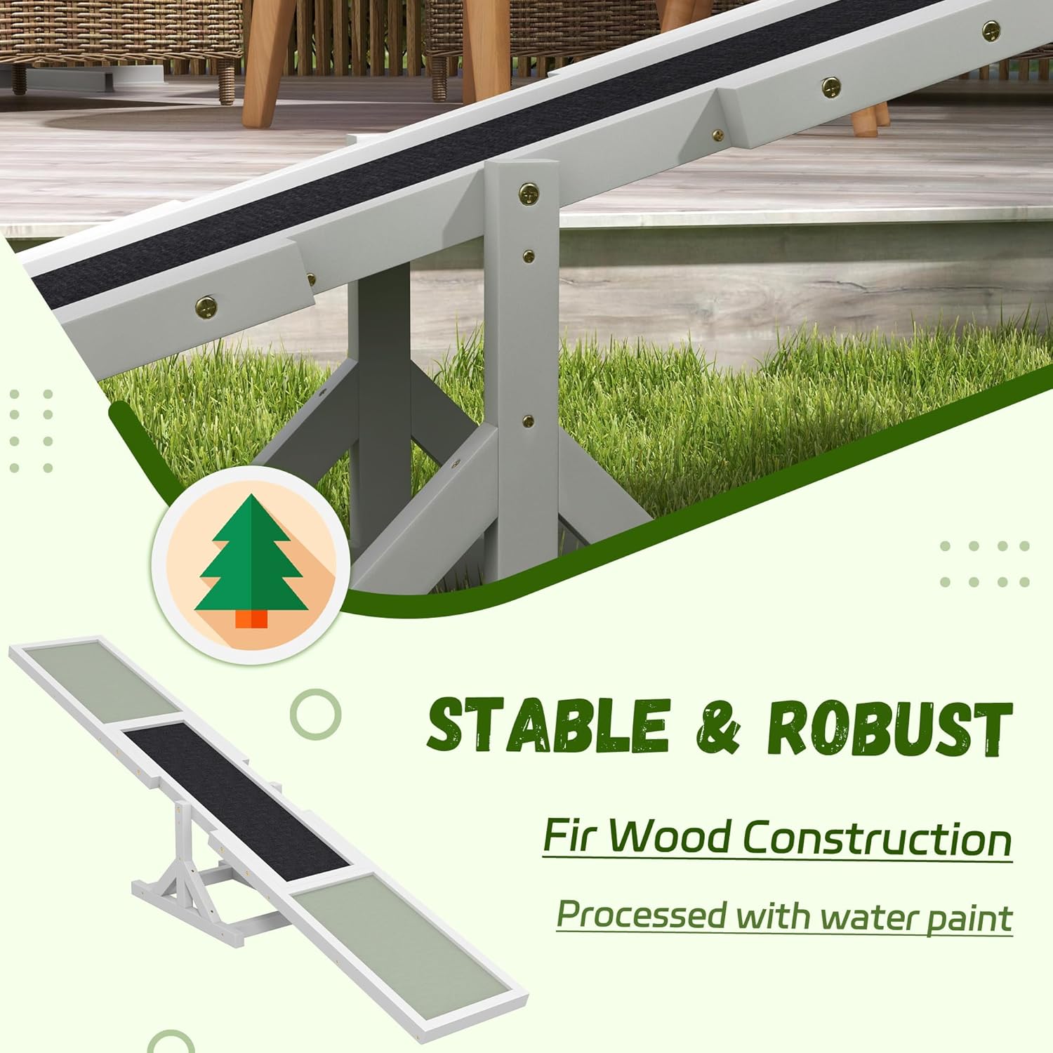 • Solid Construction: Give your furry friend a dog agility seesaw suitable for daily use. Our seesaw is made with fir wood for a structure that's outdoor-friendly and easy to maintain.