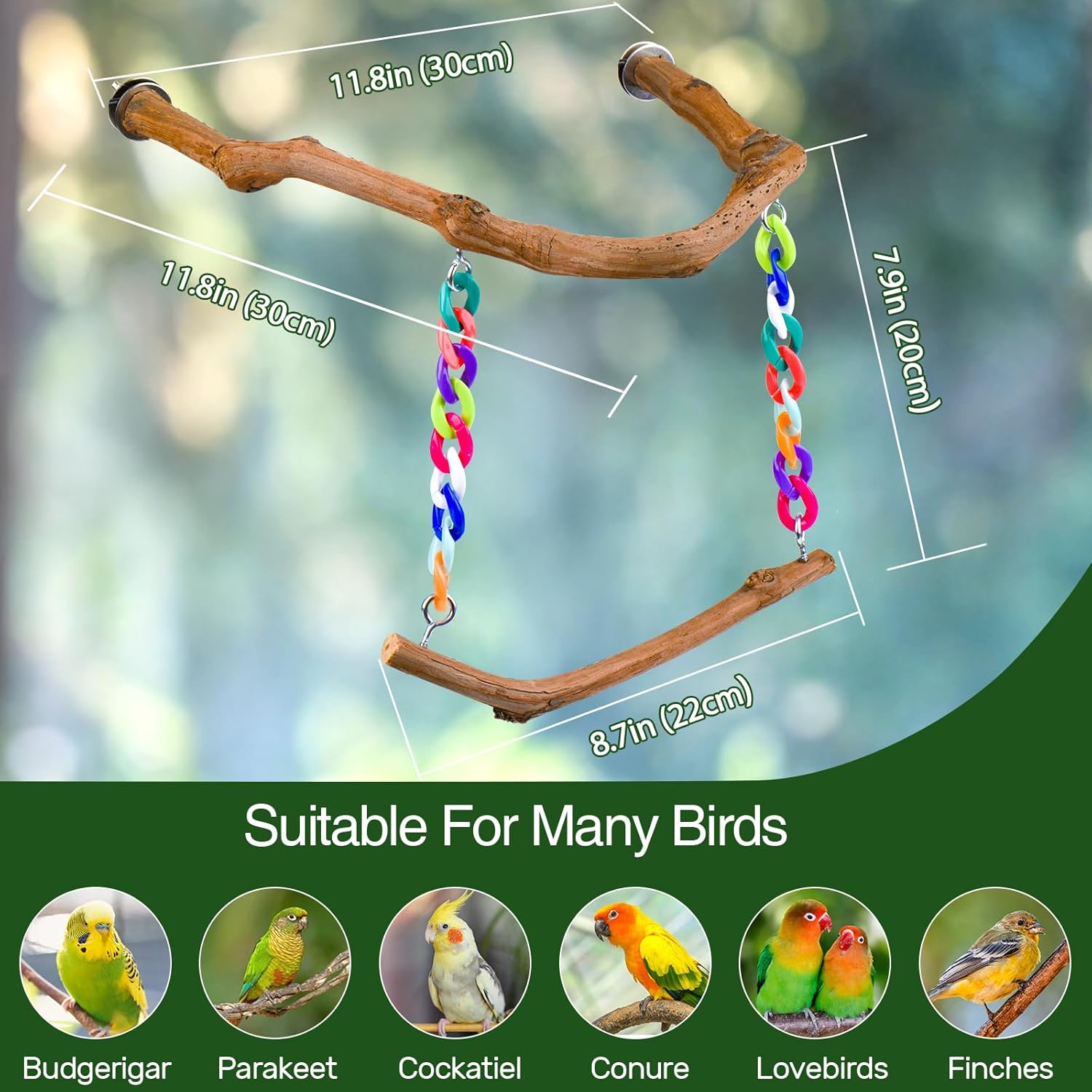 Bird Swing Toys, Standing Bird Perch with Natural Grape Wood, U Shape Hangable Birdcage Accessories, Birds Chewing Toy for Budgerigars, Parakeets, Cockatiels, Conures, Lovebirds, Finches (1Pack)