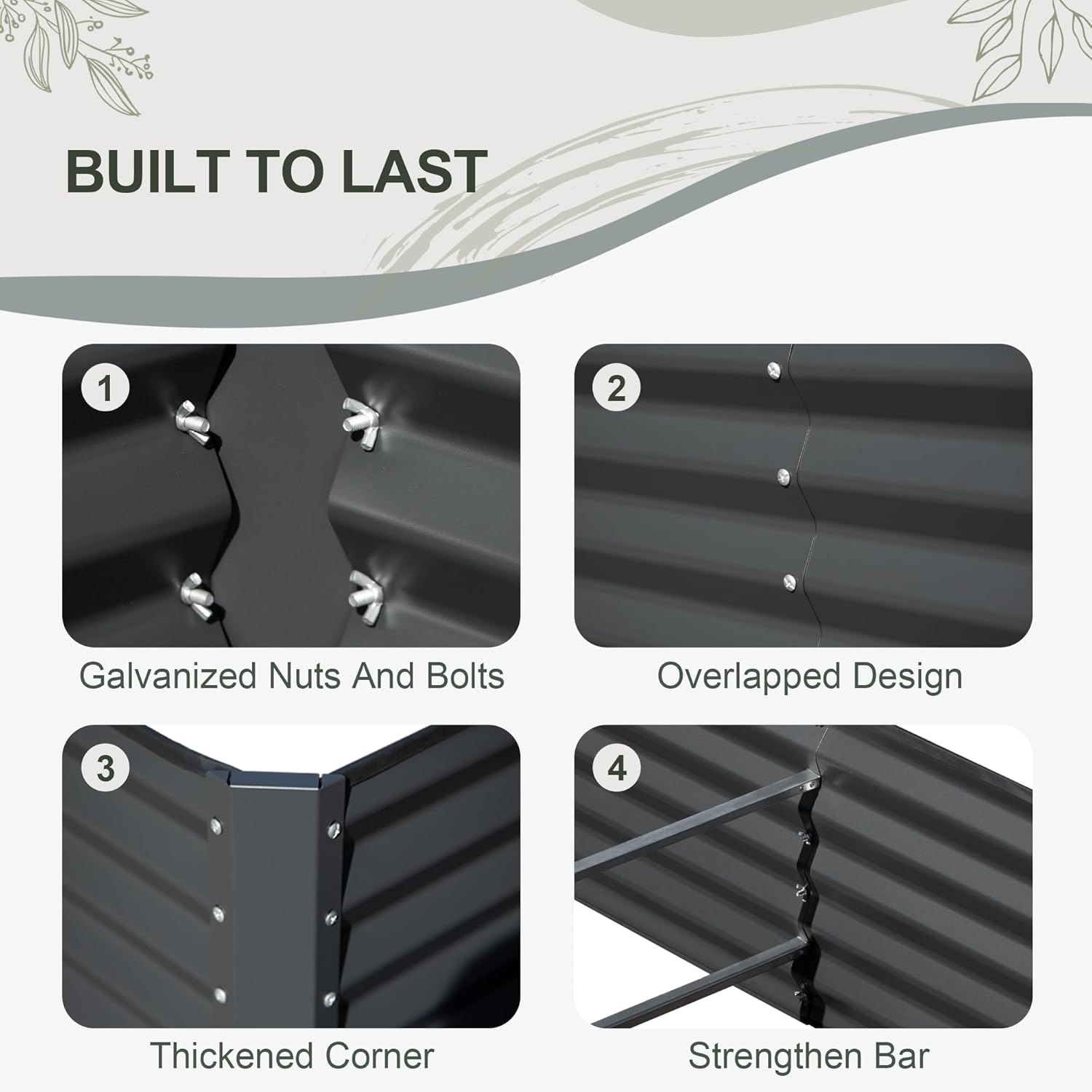 • Thicker Material: Made of thick galvanized steel plate with eco-friendly coating, rust-proof and durable. The 0.8mm thickness, reaching 1.8mm in the thickest part, ensures long-lasting raised garden beds' outdoor aesthetics.