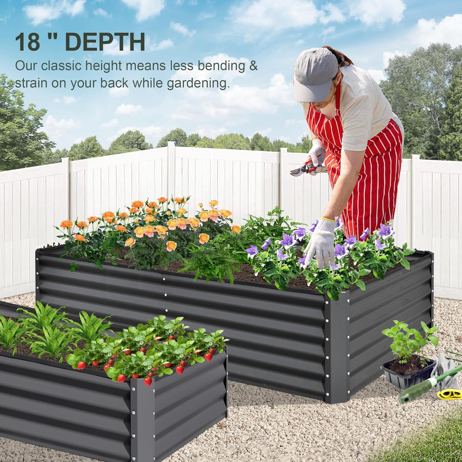 • Thicker Material: Made of thick galvanized steel plate with eco-friendly coating, rust-proof and durable. The 0.8 mm thickness, reaching 1.8 mm in the thickest part, ensures long-lasting raised garden beds' outdoor aesthetics.