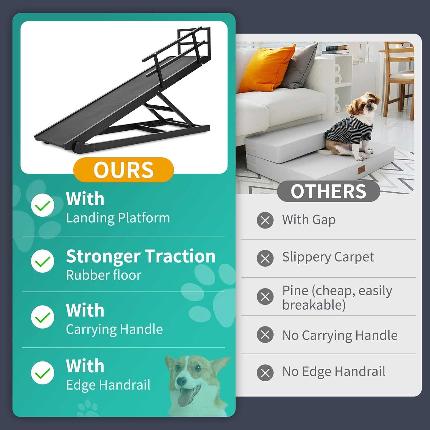 • HIGH TRACTION & ANTI-SLIP - Upgrade Rubber Mat provides anti-slip surface which gives incredible traction to your dog. Built from sturdy wood and equipped with stainless steel fasteners to provide heavy-duty support and maximum durability, It can support pets up to 200 pounds.