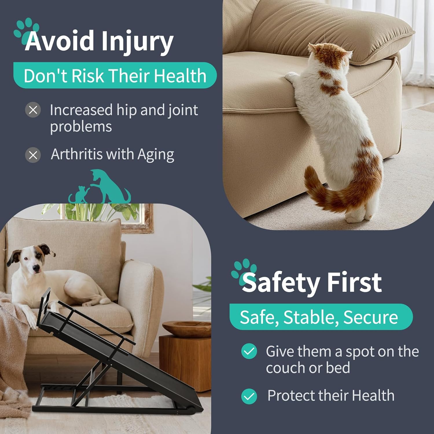 • NO ASSEMBLED REQUIRED - Handcrafted with care and the customer in mind, our pet ramps come fully assembled and ready-to-use as soon as you remove the box. The pet ramp we provide for cats and dogs is your first choice because it is easy to store and you can fold it flat or put it up in a few seconds.