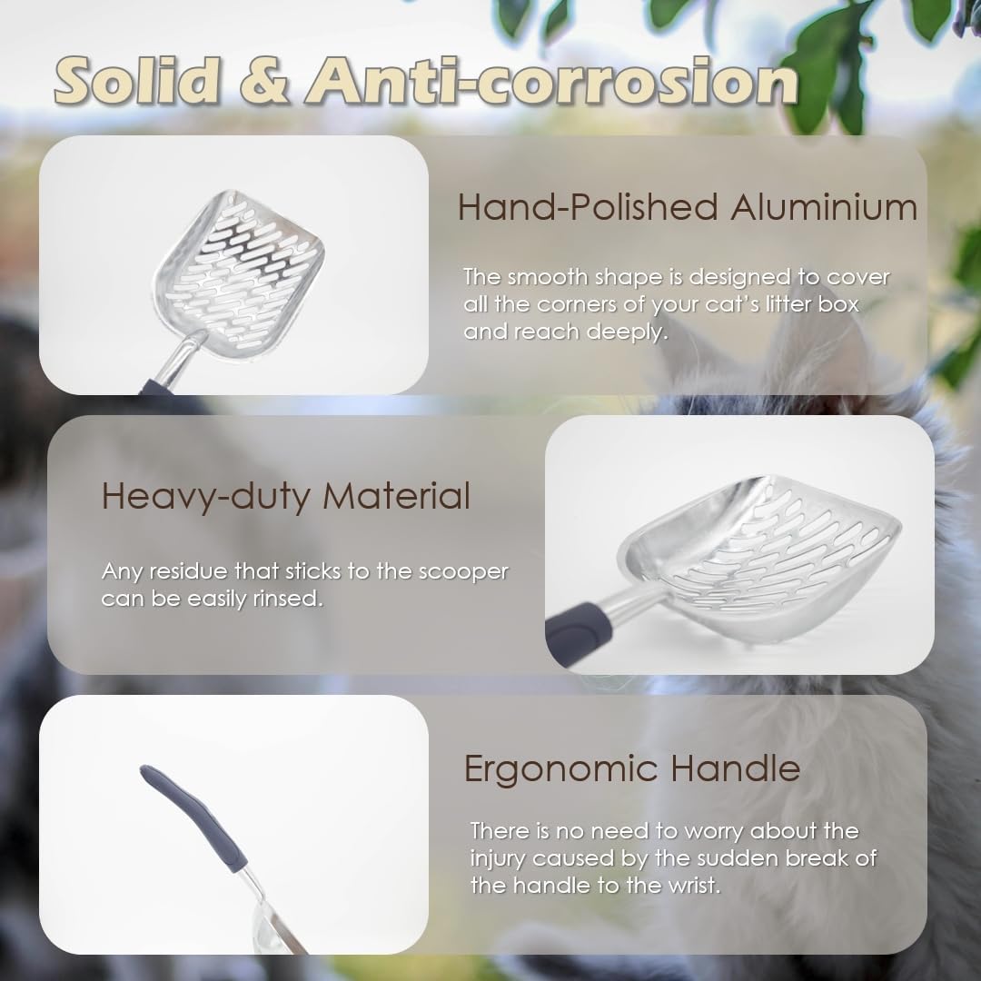 • CATS LITTER SCOOPER WITH HOLDER - No longer worry about using up the litter scooper and having no where to place, it is a commendable choice to face the challenge of massive kitty litter