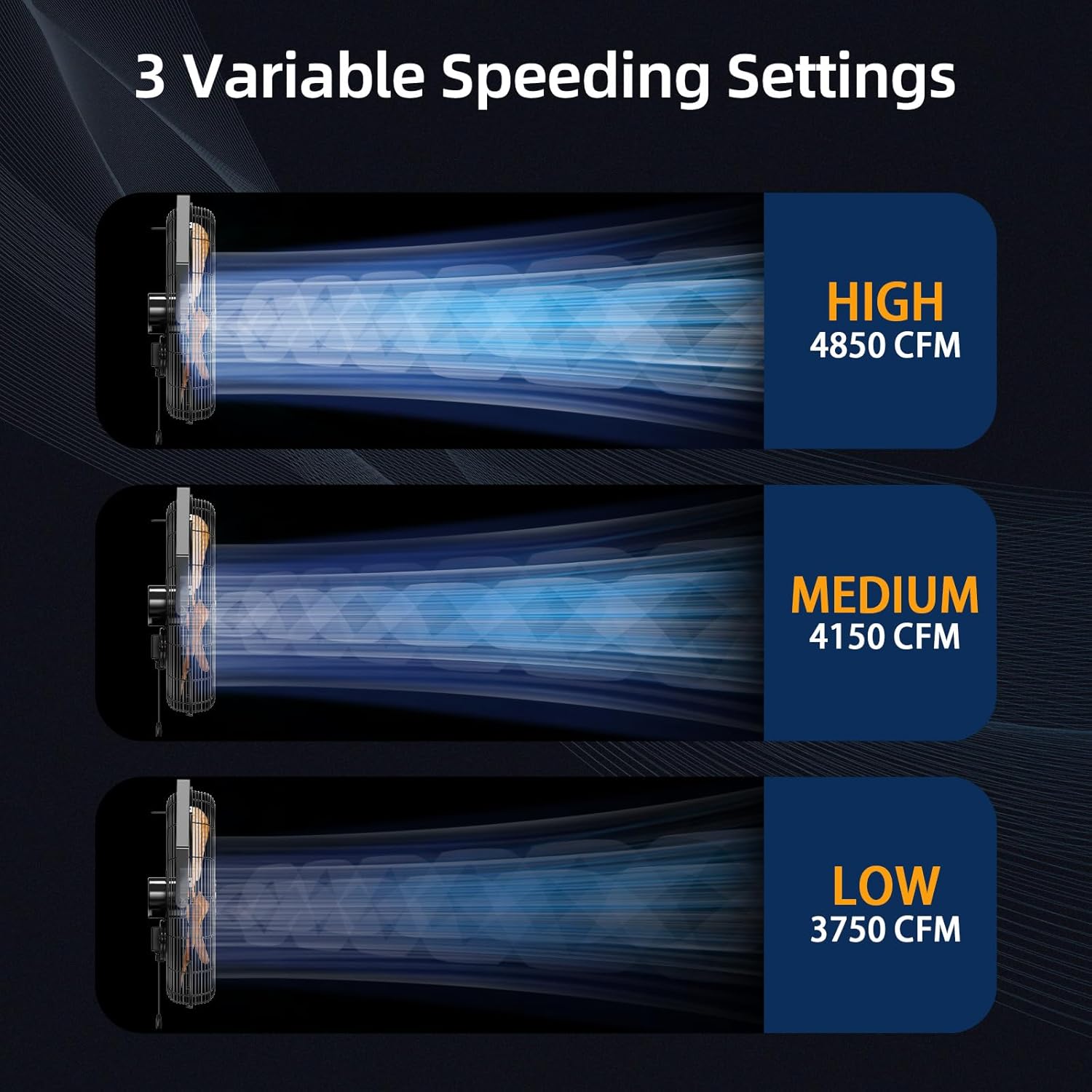 • 3 VARIABLE SPEED SETTINGS - The AIRWIZARD 20-Inch industrial wall fan has 3 speed settings, HIGH / MEDIUM / LOW - 4850 / 4150 / 3750 CFM, offers you the freedom to select from three different speed options, allowing you to optimize the airflow based on your specific needs. Whether you require a gentle breeze or a powerful gust of air, this fan has you covered.