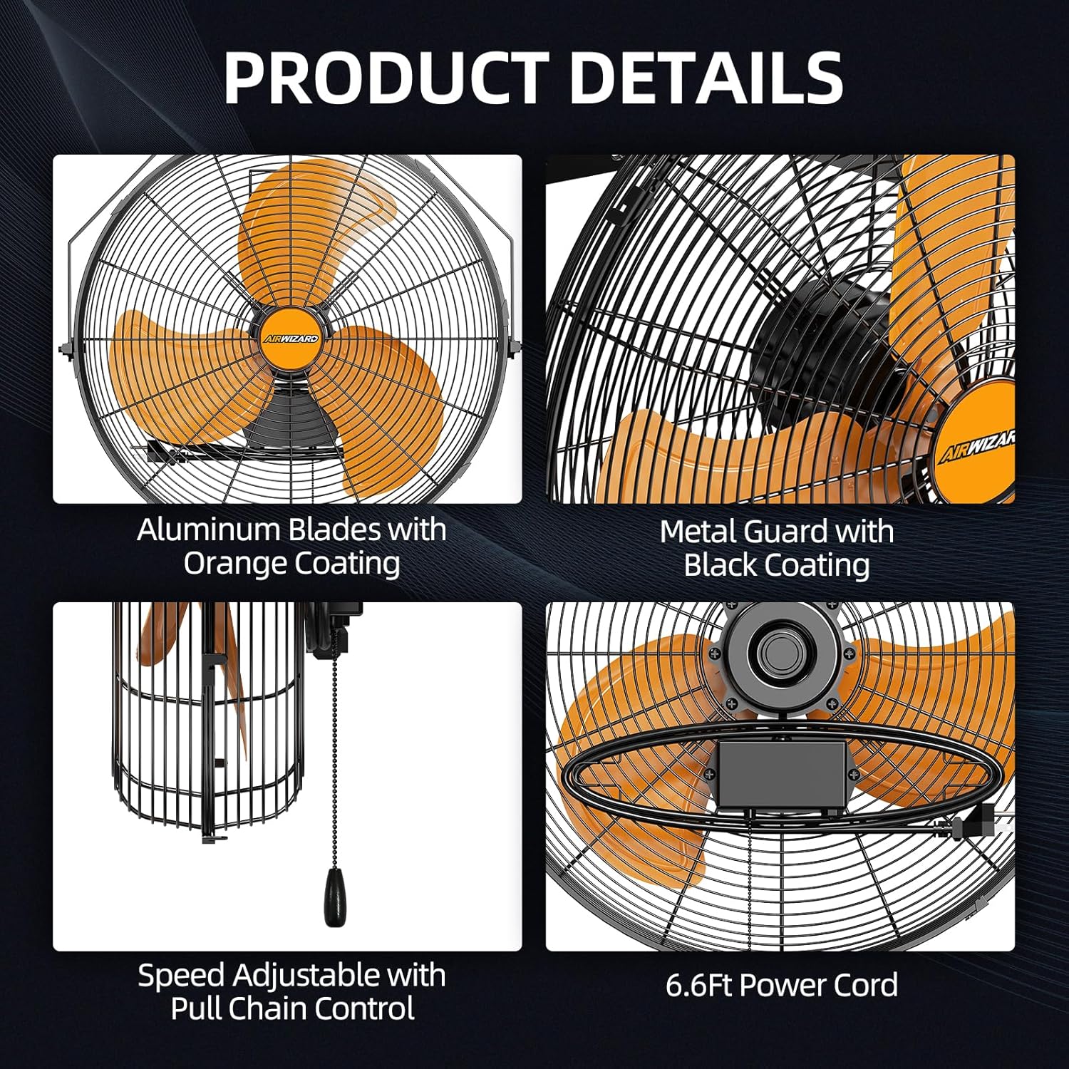 • PERFECT FOR COMMERCIAL AND RESIDENTIAL - AIRWIZARD 20 inch wall-mounted fan is ideal for cooling down your home, garage, basement, gym room, greenhouse, workshop, factory or warehouse. ONLY FOR INDOOR USE. If you have any suggestions, please feel free to contact us.