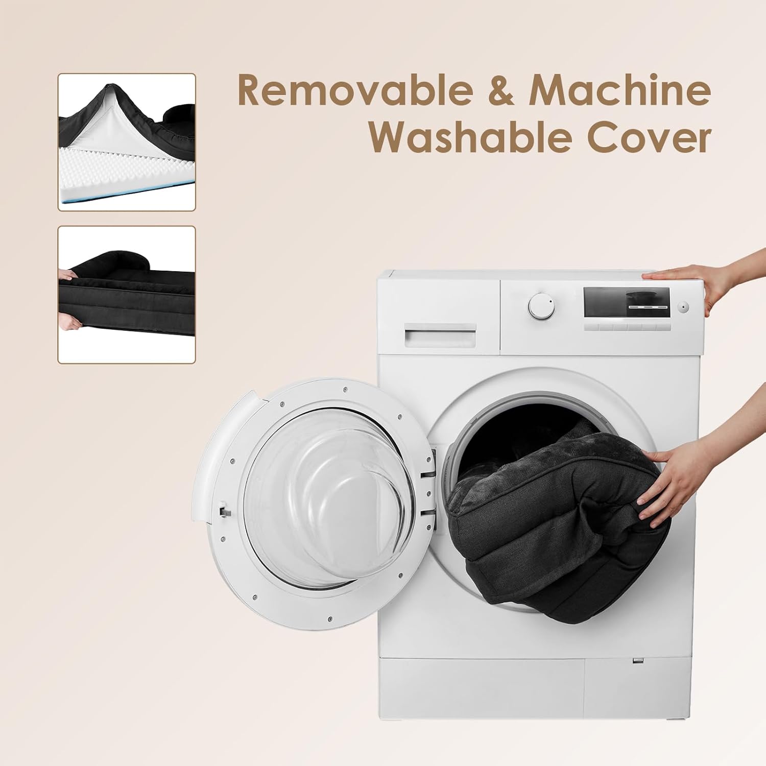 • CARE INSTRUCTIONS: Our dog bed features a removable and washable cover with a zipper closure, making it easy to clean. Remove the foam insert, and the cover can be washed in a machine. Please note that the foam insert is not washable. Allow the bed to expand for 24-48 hours after unpacking.
