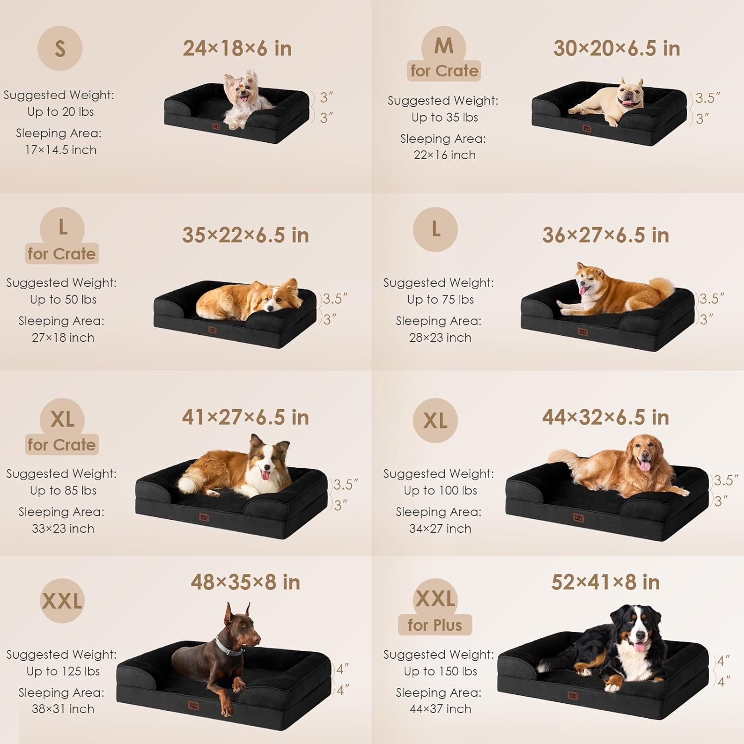 EHEYCIGA Orthopedic Dog Beds for Large Dogs, Waterproof Memory Foam Large Dog Bed with Sides, Non-Slip Bottom and Egg-Crate Foam Pet Couch Bed with Washable Removable Cover, Black