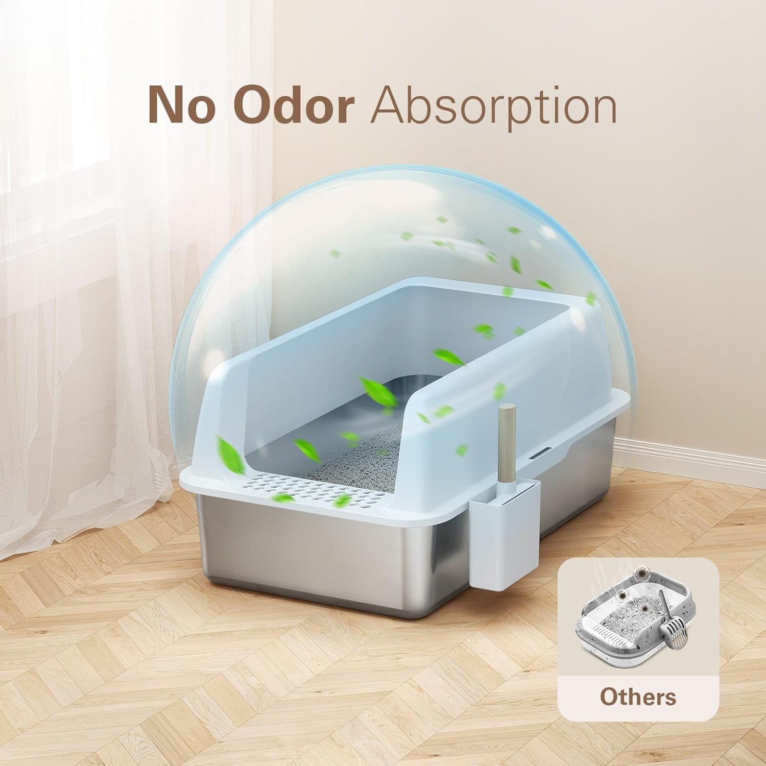 • 【Maintain a Clean Litter Area】: The stainless steel litter box with high sides designed with the unique filter pedal helps stop cat litter from getting tracked out, keeping the floor tidy and reducing litter waste. Plus, the attached litter scoop allowing for quick and efficient cleaning without hassle