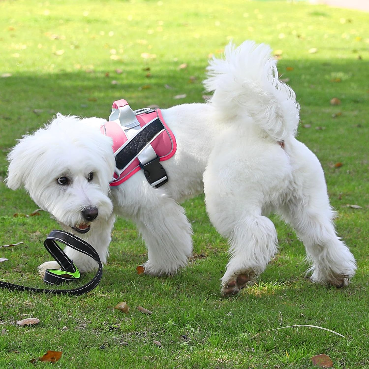 • STURDY HANDLE: The adjustable dog harness with rugged nylon handle further enhances your distance from the dog and is more intimate with each other. Easy on dog harness is also the best partner for dogs and is easy to control your dog.