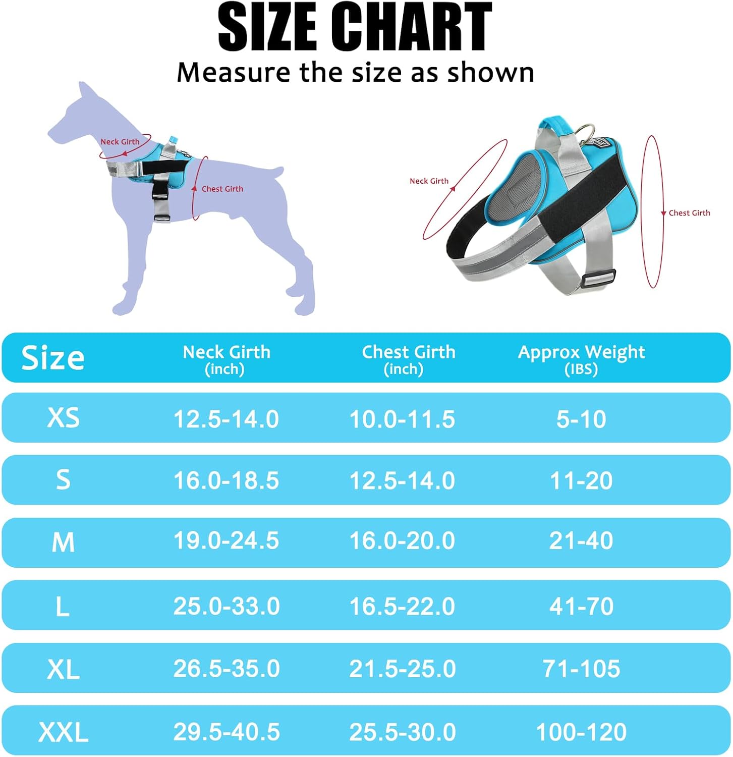 • STURDY HANDLE: The adjustable dog harness with rugged nylon handle further enhances your distance from the dog and is more intimate with each other. Easy on dog harness is also the best partner for dogs and is easy to control your dog.
